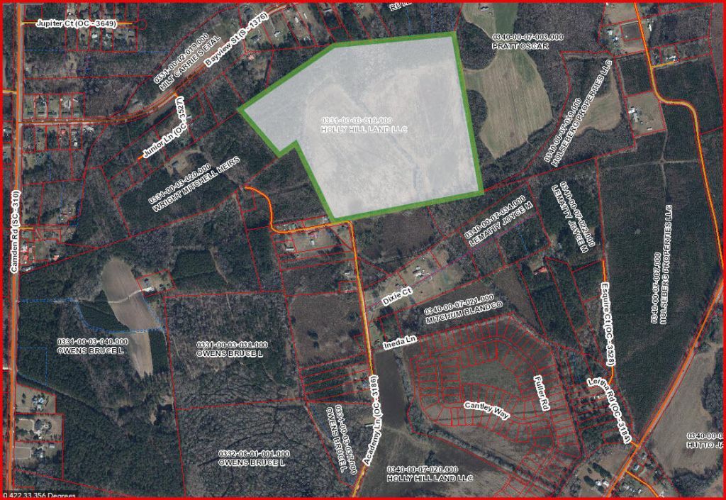 Property is 71.13 acres of cleared vacant land (currently being farmed). Sits behind Holly Hill Academy. Zoning: RG (16 Units/acre - Max Density)Public Water, septic, public sewer potentially possible.Wetlands Assessment only, no delineation completed.