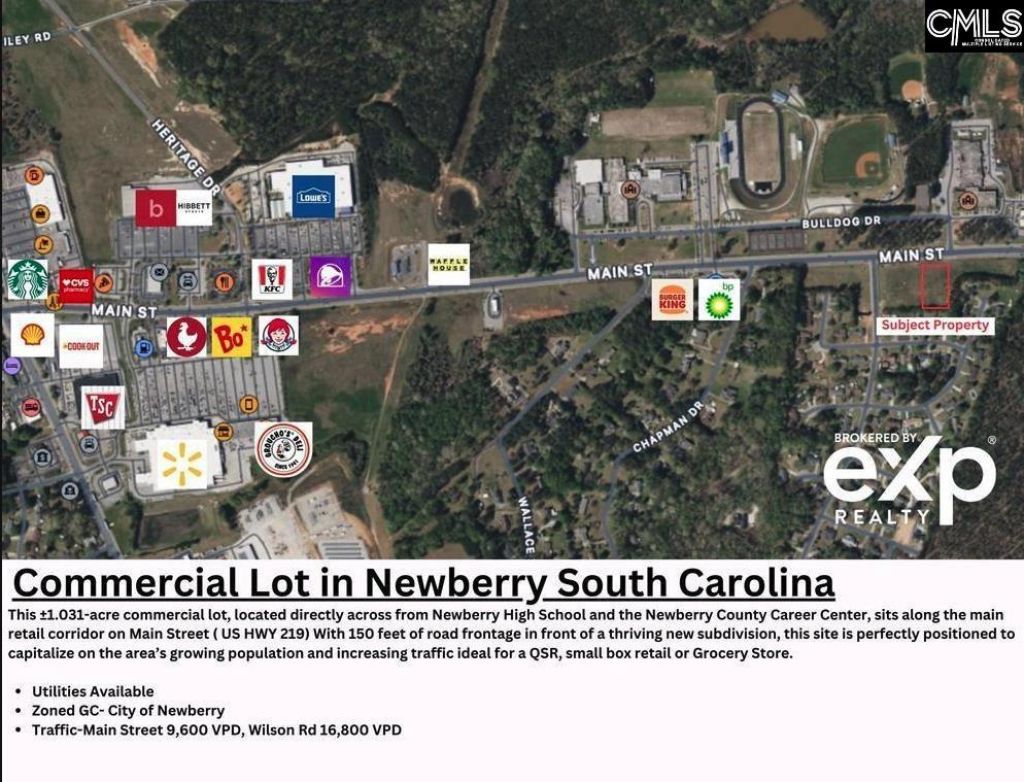 This prime 1.031-acre commercial lot, located directly across from Newberry High School and the Newberry County Career Center, offers an exceptional investment opportunity. With 150 feet of road frontage and adjacent to subdivision, this site is perfectly positioned to capitalize on the area's growing population and increasing traffic, which reached 8,800 cars daily last year and continues to rise. This lot is site-ready with utilities available. Easy access to I-26 makes this a key stopping location between Greenville and Columbia, SC with unlimited potential for growth primed for the near and sustainable future. Disclaimer: CMLS has not reviewed and, therefore, does not endorse vendors who may appear in listings.