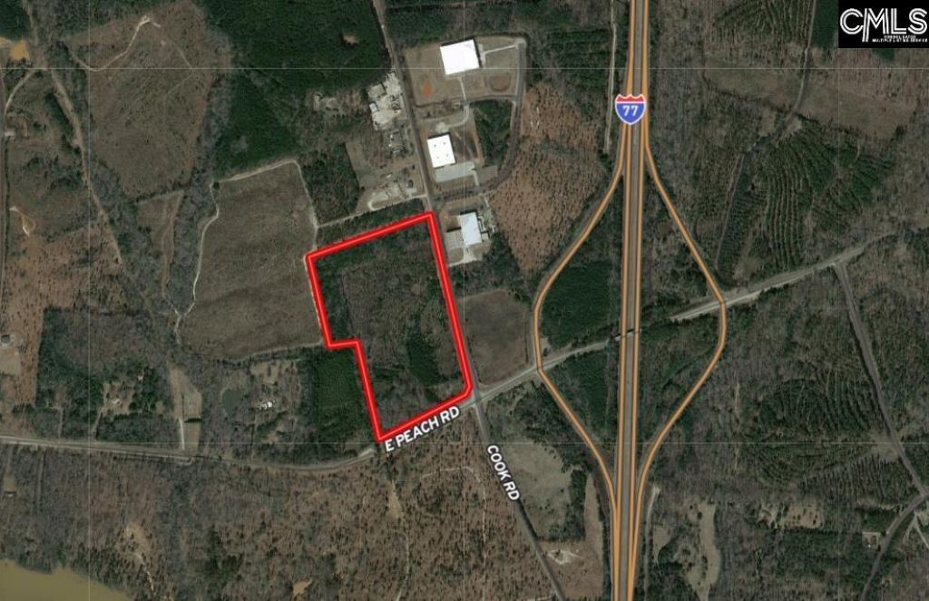Location is everything in real estate, and this property delivers. Spanning 38.65+ acres, it occupies a strategic corner near the southbound ramps of Exit 32 at the Peach Road Interchange. With over 860 feet of frontage on Peach Road and 1,400 feet on Cook Road, the site offers excellent visibility and easy access. Exit 32 is the closest northbound exit to Blythewood. The road Frontage offers opportunities for exterior outparcels and subdivision. Located between Fairfield Commerce Park and Walter B. Brown Industrial Park, the property is also close to the developing I-77 International Mega Site and the new Scout Motors Manufacturing Facility. Its location along the I-77 corridor connects Columbia and Charlotte, making it ideal for future commercial, industrial use, or development. According to SCDOT, more than 47,000 vehicles travel this stretch of I-77 daily, with traffic volumes steadily increasing. The property's existing B-2 zoning-the most flexible commercial zoning in Fairfield County-allows for a broad range of development options. As Blythewood grows and Southeastern Fairfield County continues to expand, this corner property presents a unique opportunity for investors and developers to capitalize on the region's rapid growth. Disclaimer: CMLS has not reviewed and, therefore, does not endorse vendors who may appear in listings.