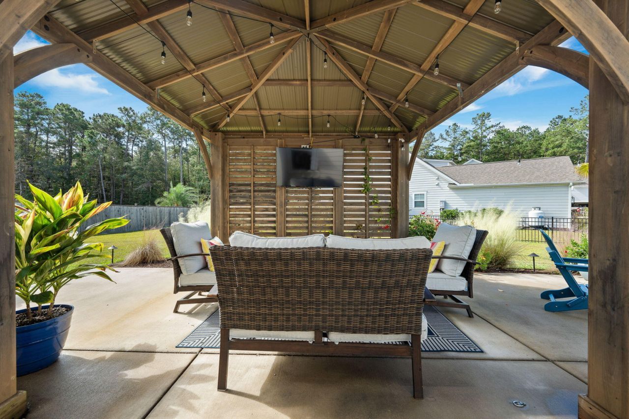 Meticulously maintained and thoughtfully designed, this 2021-built home sits on a .51-acre corner lot in the gated community of Bridges at Seven Lakes. A two-story foyer opens to a formal dining room with coffered ceilings. the kitchen offers granite countertops, an oversized island, gas cooktop, double ovens, and a wall of windows that connects effortlessly to the living area and screened porch. The main level includes a guest bedroom and full bath. Upstairs offers four additional bedrooms, one with vaulted ceilings that can serve as a loft/flex space. The primary suite features a tray ceiling, oversized shower, and custom walk-in closet. Enjoy a fenced back yard with an extended patio, firepit, and pergola w/ TV. Enter into a custom drop zone from the extendedfootprint two car garage.Community amenities include a pool overlooking the lake, a dog park, recreation fields, and scenic walking trails. Convenient to Lowes foods, Starbucks, Publix-this is quiet living with modern conveniences a few miles away.