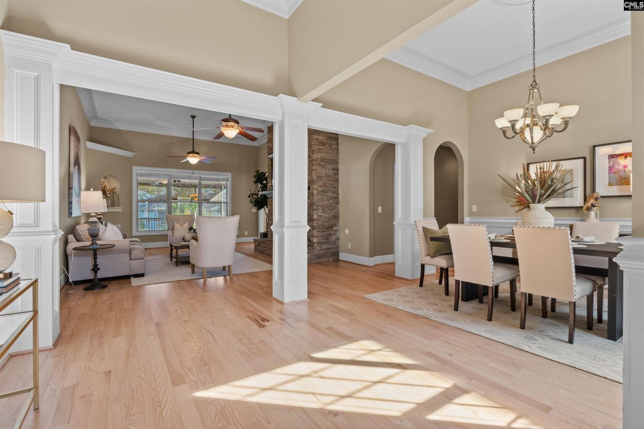 Welcome to Harbour Watch, a premier gated community on Lake Murray offering resort-style amenities and an unbeatable lifestyle. This stately brick home offers 4 bedrooms + 3.5 baths in 3,872sf. Designed for comfortable living and effortless entertaining. Step inside to find freshly refinished hardwood floors throughout the main living areas, where the open-concept dining room flows seamlessly into the formal living room anchored by a cozy fireplace. Beyond, the spacious kitchen opens to a keeping room with the home's second fireplace and a full bar, perfect for gatherings. The kitchen features stained cabinetry, granite countertops, and bar seating. The main-level primary suite showcases boxed ceilings, a large walk-in closet, double vanity, separate shower, and garden tub for relaxation. Two additional bedrooms on the main level share a full hall bath. Upstairs, you'll find cozy carpet flooring a large bonus/game room and a fourth bedroom with its own closet and full bath, ideal for guests, a teen suite, or a home office with plenty of privacy. Enjoy community amenities including a clubhouse with a heated pool and fitness center, marina with boat ramp, putting green, pickleball courts, walking trails, and more. With its timeless design, generous living spaces, and Lake Murray access, this home delivers the perfect blend of comfort, convenience, and community. All this with a deeded boat slip included! Live like you are on vacation. Disclaimer: CMLS has not reviewed and, therefore, does not endorse vendors who may appear in listings.