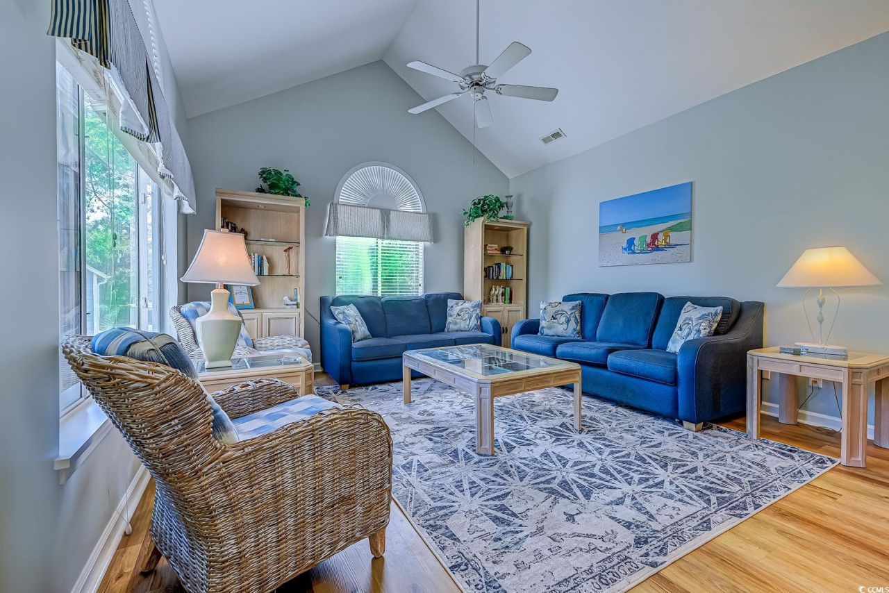 Rare three-bedroom, three-bath villa in Canterbury Court at Kingston Plantation with vaulted ceilings, a screened porch, and a private garage. This spacious residence combines an open layout with abundant natural light, making it ideal for both everyday living and entertaining. The living room flows seamlessly into the dining area and kitchen, creating a warm and inviting atmosphere, while the screened porch provides the perfect retreat for morning coffee or evening relaxation surrounded by trees. The kitchen offers ample cabinetry, solid counters, and a functional design with direct sightlines into the living and dining areas. The primary suite features vaulted ceiling details, an ensuite bath, and generous closet space. Two additional bedrooms, each with convenient bath access, provide comfort and privacy for family or guests. With three full baths, this villa delivers flexibility rarely found in Kingston Plantation. One of the most unique advantages of this property is the private garage, a feature seldom available in Kingston. It is the perfect spot to store a golf cart, bikes, or beach gear and offers quick access to the resorts entrance and exit. The golf cart is negotiable with the purchase, adding even more value for those seeking the full Kingston lifestyle. Set on 145 oceanfront acres, Kingston Plantation offers 24-hour gated security, multiple pools, walking trails, and lakes, along with an optional sports and health club featuring tennis, pickleball, fitness facilities, and a spa. On-site dining, seasonal activities, and direct access to the beach complete the resort experience. Located just minutes from Barefoot Landing, Tanger Outlets, Restaurant Row, and Hwy 22, this villa combines comfort and convenience in an unbeatable setting. This Canterbury villa is an exceptional opportunity whether you are seeking a primary residence, vacation retreat, or investment property. With its rare garage, spacious layout, and desirable location, it represents one of the most unique offerings in Kingston Plantation. Schedule your private showing today and experience coastal living at its best.