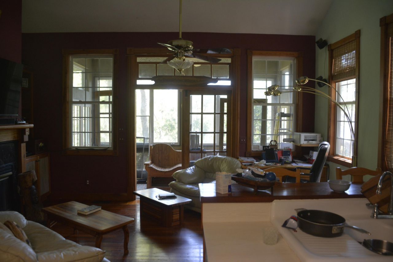 Outstanding small cottage built by Edisto's Premier Cabinet maker for himself. Heart pine floors with rock maple and cherry inlay. Front door was made in 1790 from plantation in Augusta Ga. with rosettes .Kitchen floor was salvaged from same house. Kitchen sides are English Yewwood, drawers and frames are heart pine. The crown molding and baseboards are cherry wood. The bedrooms floor and baseboards are red oak, doors to back porch are cypress with mostly 150 yr old glass. 2 bedrooms with loft, great living area with fireplace, with covered porch. The woodwork is unbelievable throughout house. Woodworking shop under house. Outside covered sitting area. 1.5 acres. located just minutes from beach. Lot has plenty of hardwoods, grapefruit trees & exotic plants. Owner put his heart in this one