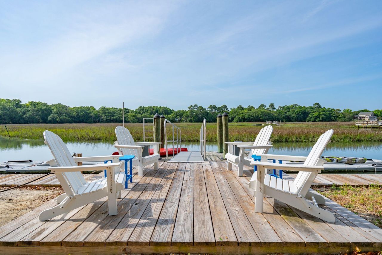 Waterfront living with sweeping marshfront views and a solar powered floating boat dock! On navigable water to Clark Sound and Charleston Harbor in award winning ''Freeman's Point'', the only new waterfront community on James Island, located just 10 minutes to Folly Beach and 15 minutes to downtown Charleston. 1047 Hills Plantation Drive offers a rare opportunity in a newer construction waterfront neighborhood on James Island. This marshfront home is one of only 8 along the seawall, a distinction that delivers both privacy and permanence, and a shared dock with just one neighbor offers direct water access. Tides here on Seaside Creek generally vary 6 to 9 feet, with 1 to 3 feet of water at low tide, creating a dynamic and ever changing backdrop that makes every day on the water feeldifferent. Enter into an expansive open floor plan that immediately impresses with its scale and sweeping sunset views. The generous kitchen and dining area flow naturally into the living room, anchored by a cozy fireplace that makes the space feel warm and inviting year round. From there, step out onto the screened in porch and take in the serene marsh views filled with dolphins, birds, and other wildlife. This home is one of very few in the community to offer both a first and second floor rear screened porch, meaning you can enjoy the beauty of the marsh morning, evening, rain or shine. The front room is currently used as a secondary living room but could easily function as a formal dining room or home office depending on your needs. The main floor also offers one guest bedroom with a private ensuite bathroom and walk-in closet, perfect for visitors or multigenerational living.Continue upstairs to find the primary suite - that is a true retreat in every sense of the word. Wake up to marsh views, step out onto your own private screened porch, and unwind in a spacious bathroom. A generous walk in closet and a comfortable sitting area round out a suite that feels more like a private escape than a bedroom. Two additional bedrooms each have their own private ensuite baths, giving every member of the household their own space and privacy. A generous laundry room completes the upper level, adding everyday convenience to an already exceptional floor plan.A massive 4 car garage provides more than enough room for vehicles, boats, gear, and anything else that comes with living the Lowcountry lifestyle. Ample additional storage means you'll never have to compromise on space. Freeman's Point is one of James Island's most sought after neighborhoods, and for good reason! Walking trails, a boat ramp, a community pool, and well maintained parks make this a place where neighbors actually enjoy spending time outside. With Folly Beach just down the road and the charm of downtown Charleston only minutes away, the location simply cannot be beat!