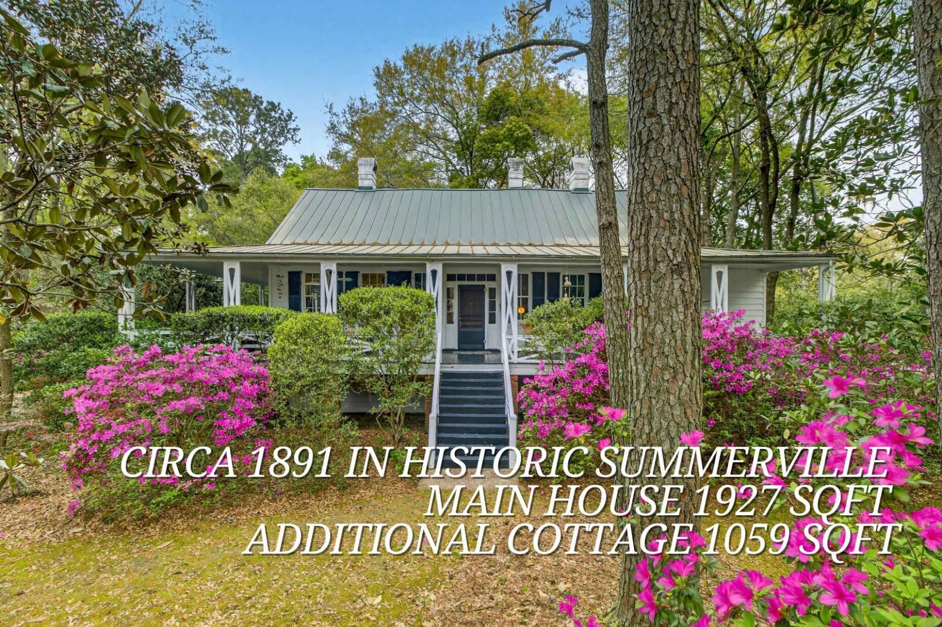 Tucked into the heart of the historic district of Summerville, 108 Rutherford Street offers a rare blend of history, scale, and walkable lifestyle. Set on an expansive .93-acre lot, this property lives like a private garden estate just moments from Azalea Park and the shops and dining that define downtown Summerville.According to the Summerville Journal Scene, this residence is recognized as a plantation-style cottage with a porch wrapping three sides--an architectural detail that immediately sets the tone for slow mornings and shaded afternoons. It also holds the distinction of being stop #3 on the local walking tour of historic homes, quietly placing it among the town's most notable properties.Believed to have been built around 1871 by Charleston merchant William Carrington, the home reflects a time when craftsmanship and proportion mattered. Inside, wide heart of pine floors run throughout, and soaring ceilings--many reaching approximately 14 feet--create an airy, grounded feel that is difficult to replicate today. The main home offers two bedrooms, a welcoming living room, dining room, kitchen, and a light-filled sunroom. The primary suite is generously sized, complete with a large bathroom and an oversized closet. A metal roof adds long-term durability while respecting the home's character.The lower level has been enclosed to provide functional space for a workshop, storage, and laundry, offering flexibility without compromising the integrity of the main living areas.Just beyond the main residence, a detached brick cottage expands the possibilities. With two bedrooms, a full bath, kitchen, and living area, it serves equally well as a guest house, private quarters, or income-producing opportunity.The grounds are a defining feature. Mature trees and established plantings frame the nearly acre-sized lot, creating a sense of privacy and permanence rarely found this close to town. There's room here--to gather, to garden, or simply to enjoy the setting.Importantly, while rich in history, the home is not on the national historic registry. That distinction allows for greater flexibility in how the property can be adapted, updated, or reimagined to suit modern living while still honoring its past.This is the kind of property that doesn't just check boxes--it tells a story, and invites the next chapter to be written.