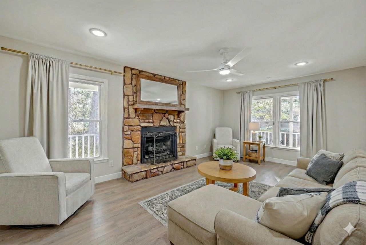 Private equestrian estate on 4 gated acres featuring a beautifully updated home, wraparound porch, stable, and detached garage/workshop. Surrounded by mature trees, this 3-bedroom, 2.5-bath residence offers a main-level primary suite and refined upgrades throughout, including new roof on home and garage, new windows, updated flooring, lighting, and fixtures. The chef-inspired kitchen showcases new cabinetry, countertops, floating shelves, and appliances, while spa-like baths feature new vanities, toilets, and updated showers. Additional highlights include a tankless water heater, generator, and whole-home water filtration. A rare blend of luxury, privacy, and equestrian-ready land. Schedule your tour today!