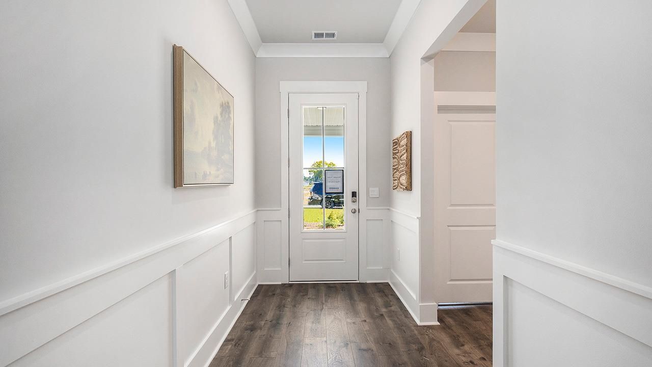 The Litchfield Plan Where Style Meets Smart Living Welcome to The Litchfield, a thoughtfully crafted single-level home blending comfort, elegance, and modern convenience. From the moment you step onto the inviting front porch, youll feel the warmth and charm that make this home so desirable. Step inside to a stunning open-concept layout featuring soaring 11 ceilings, a spacious great room, and a seamless flow into the gourmet kitchen and dining area. Perfect for entertaining or everyday living, this space is filled with natural light thanks to a 4-panel sliding glass door that opens to a covered rear porchan ideal spot to relax and enjoy the outdoors. The chef-inspired kitchen is both stylish and functional, boasting a large island with breakfast bar, granite countertops, stainless steel appliances, and a corner walk-in pantry for all your storage needs. The private owners suite, tucked away at the back of the home, is a true retreat. Featuring a tray ceiling, dual walk-in closets, a double vanity, separate linen closet, and a luxurious 5 tile shower, this suite offers space and serenity. Three additional bedrooms are thoughtfully positioned at the front of the home to provide separation and privacy. This home has a spacious 2-car garage with opener. And with Americas Smart Home technology package included, youll enjoy ultimate convenience and peace of mindcontrol your thermostat, front door light and lock, and video doorbell right from your smartphone. The Litchfield Plan Timeless design. Smart living. Welcome home. *Photos are of a similar Litchfield home. (Home and community information, including pricing, included features, terms, availability and amenities, are subject to change prior to sale at any time without notice or obligation. Square footages are approximate. Pictures, photographs, colors, features, and sizes are for illustration purposes only and will vary from the homes as built. Equal housing opportunity builder.)