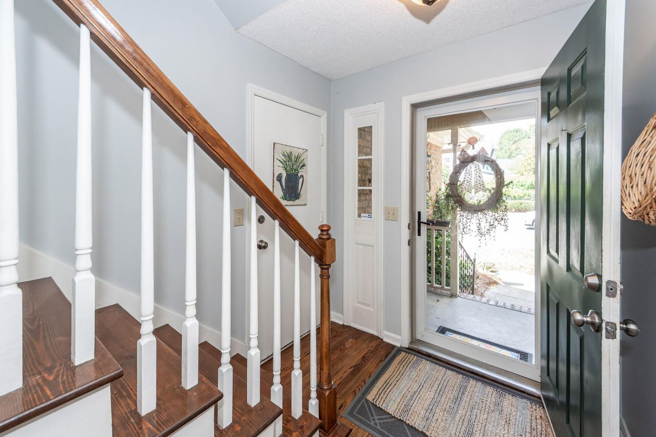 This 3-bdr, 2.5ba home in the Lakeview subsection of Ashborough has been meticulously maintained, and it shows! From the attractive hardwood flooring in the main living spaces and bedrooms to the remodeled bathrooms, this house is charming from top to bottom.! The family room and dining area are at the rear of the home with a dramatic vaulted ceiling. Many windows bring in lots of natural light in this open and spacious area. They also provide al view of the beautiful and tranquil backyard. A gas fireplace (there is no gas tank at property) in the family room could offer a great place to relax with family and friends on chilly evenings. The dining area has ample space for a large table and entertaining. The kitchen has attractive cabinetry, Quartz countertops, stainlessdishwasher and microwave. The primary bedroom is located downstairs and has a great space for furniture placement. The attached bathroom has been upgraded with a tiled shower, elegant tile flooring, and the vanity has also been plumbed for a second sink if desired. Upstairs there are two bedrooms with an updated bathroom conveniently located nearby. There is also a nice little nook at the back of the staircase that would be an ideal space for a relaxing reading area or for a home office. The outdoor area for this home is ideal for enjoying the natural habitat. The lot is located directly on the lake with a small private dock and abundant wildlife. By sitting on the screened porch or the dock, you can view blue herons, egrets, turtles, and more! This peaceful homesite is nestled on a cul-de-sac lot and would be a great place to call home! The home's location allows for a quick trip to the Ashley River Park and the new Ashley River library.