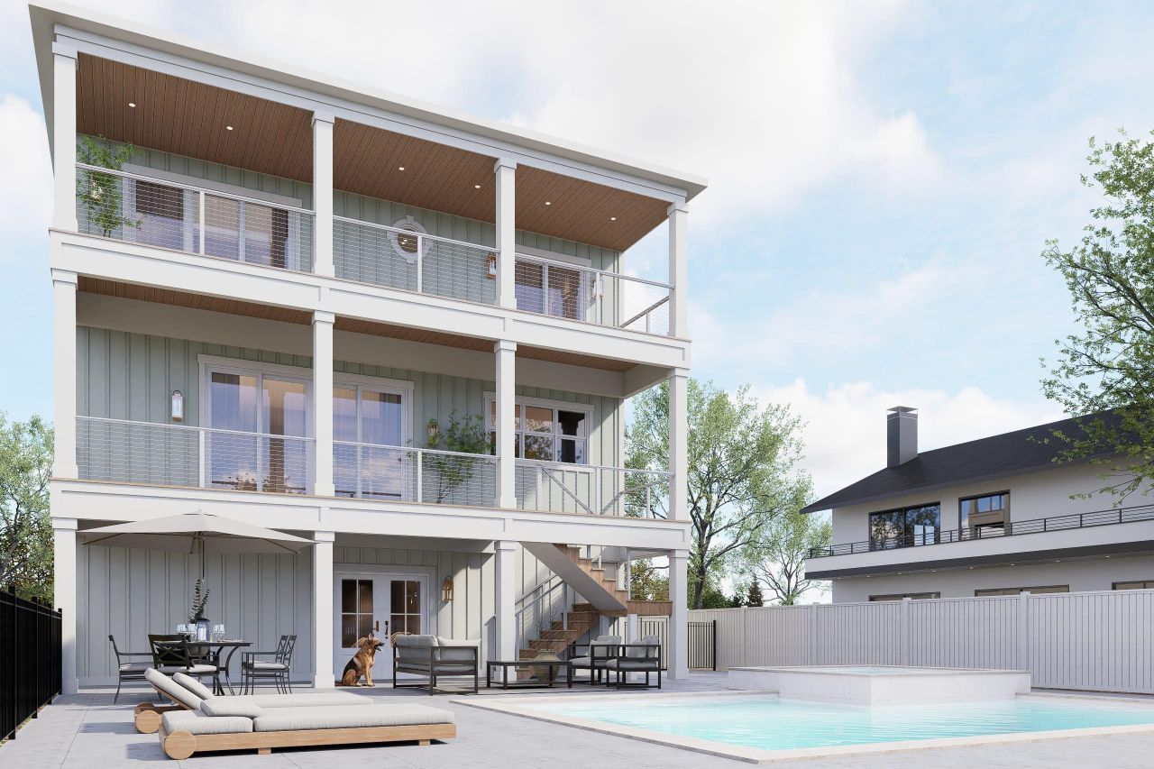 This brand-new 5-bedroom, 4-bath luxury coastal home, located just three rows from the ocean, is projected for completion in Spring 2026. The property offers a private pool and hot tub, elevator, ocean views, ample parking, and high-end finishes throughout. The open-concept main living area is warm and inviting, centered around a spacious great room featuring stained beams, a fireplace, and custom built-in cabinetry with shelving. Large windows and an airy layout bring in natural light. The kitchen is thoughtfully designed for both everyday living and hosting, featuring quartz countertops, custom vent hood, ceiling-height cabinetry with spice drawers, a convenient trash pull-out, glass upper doors, a walk-in pantry, a Delta champagne-finish pot filler, and a full ZLINE appliance package that includes a gas cooktop, wall oven/ microwave combo, panel-ready refrigerator, dishwasher in satin stainless steel with champagne bronze accents. Quality craftsmanship and carefully selected finishes are evident throughout the home, including designer lighting, PlyGem windows, oak stairs handstained to match floors, Delta plumbing fixtures, and modern single-panel interior doors that complement the clean coastal aesthetic. The owners suite provides a relaxing retreat, highlighted by a dark blue shiplap ceiling and a spacious layout designed for comfort and privacy. Owners bath includes split vanities, private water closet, enormous walk in shower with handsprayer and oversized niche with lighting included. Guest bedrooms finished include fans, natural lighting, and some painted accent ceilings. Guest baths are decked out in top of the line flooring tile and shower walls. Third floor features a dedicated laundry room too. Outdoor living is equally impressive, with a private pool and hot tub and fencing. Front of home features indoor garage parking plus ample driveway space.