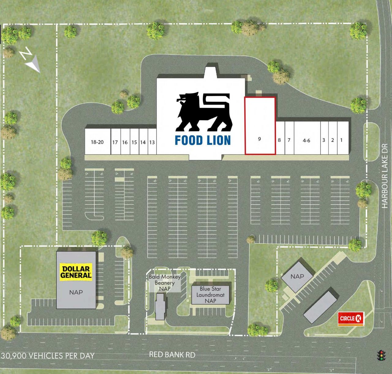 Harbour Lake Center has 8,450 SF of prime retail space available, which is the final opportunity to lease in this well-established center. Anchored by Food Lion, the property is ideally positioned just off the highly traveled Red Bank Road corridor, which sees approximately 28,700 VPD. Current NNN expenses are estimated at $5.00/SF.