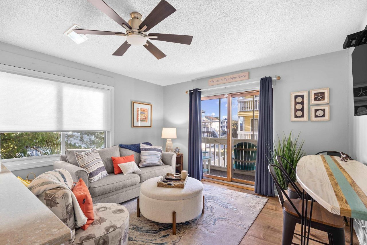 Are you looking for the perfect place to relax and enjoy the beach? This furnished condo is for you! Located across the street from the beach in Garden City, this 1 bedroom unit has so much to offer. Step inside to this freshly painted condo with luxury vinyl flooring. The bedroom has a spacious walk in closet with a recently replaced washer/dryer. The kitchen features solid surface countertops and a large breakfast bar which is open to the living area. This is an end unit with updated windows allowing the Carolina sunshine to fill your space. You can even relax on the screened porch and enjoy the sounds of the ocean. There is a storage closet on the porch to stow your beach chairs. Plus, there is a pool for those hot summer days. The exterior of the building has been recently painted and a roof was installed the beginning of 2025. Plus, the HVAC and Water Heater have been recently replaced. This has been used as a second home. The only worry you should have for years to come is, where are my flip flops? Make an appointment today!