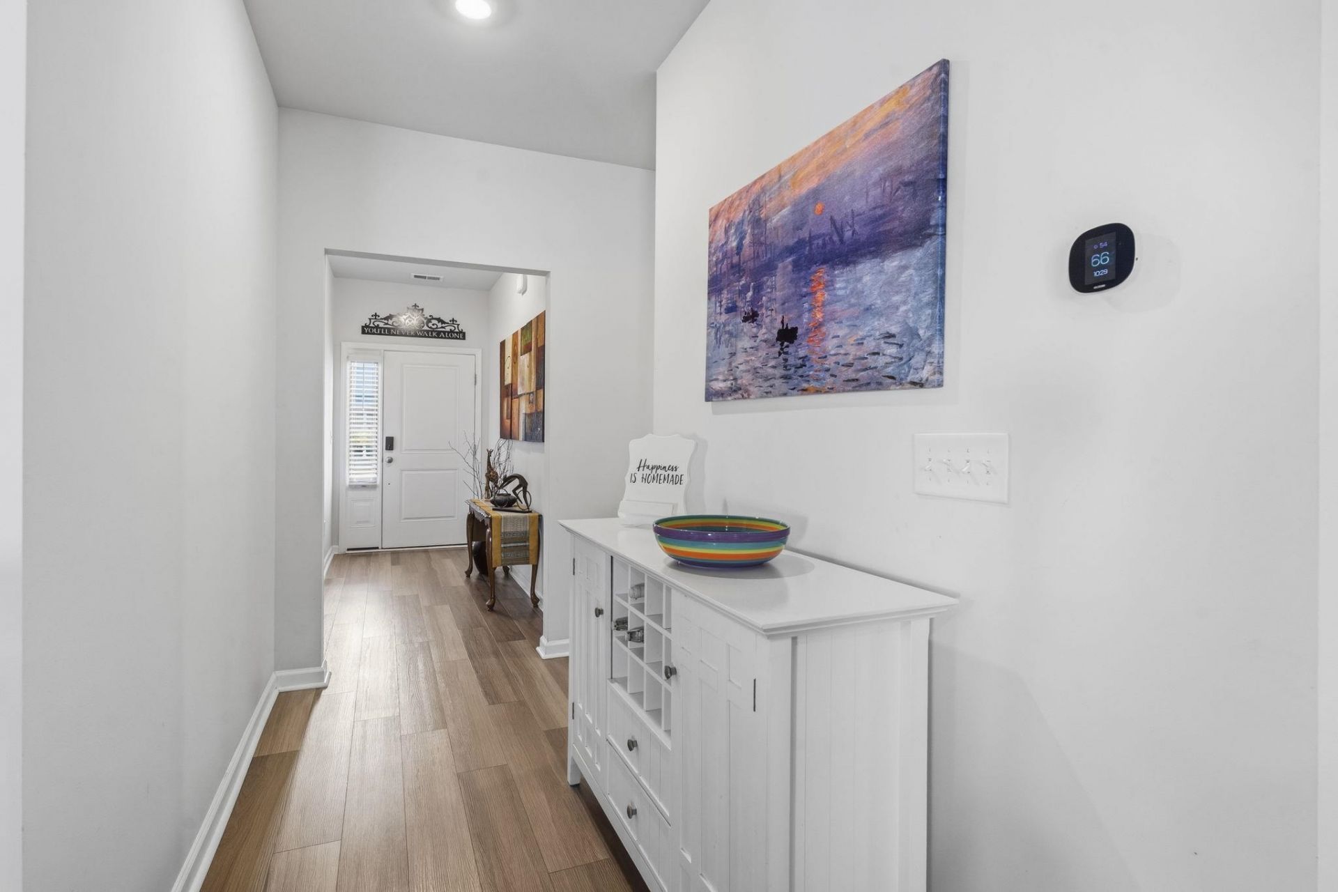 Updated 4-bedroom, 2-bathroom single-level ranch home with a fenced yard and pond-front lot in the Merrill Villas community of Carolina Forest, Myrtle Beach, SC. The open-concept floor plan begins with a defined foyer featuring crown molding, upgraded trim, and direct access to the main living areas. The kitchen includes granite countertops, a large center island with breakfast bar seating, stainless steel appliances, white shaker cabinetry, and a walk-in pantry, creating a functional hub for cooking and storage. The kitchen connects to a dedicated dining area and an expansive living room with a tray ceiling, crown molding, offering a cohesive and modern layout for daily living. The primary suite sits privately at the rear of the home and features a tray ceiling, large walk-in closet, linen closet, and an ensuite bathroom with a double-sink vanity and step-in tiled shower. Three additional bedrooms are located on the opposite side of the property, positioned near a full guest bathroom to support multiple uses such as a home office, guest suite, or hobby room. A separate laundry room, attached 2-car garage, and tankless gas water heater add convenience and efficiency. Outdoor living includes a fenced backyard overlooking a community pond, offering usable yard space along with water views. The property sits within Merrill Villas, a natural-gas community in the heart of Carolina Forest, known for amenities, walkability, and access to major corridors. The location provides proximity to Highway 31, Carolina Forest Boulevard, Myrtle Beach International Airport, Coastal Grand Mall, Tanger Outlets, medical facilities, and multiple golf courses, as well as being less than 5 miles from the Atlantic Ocean. This single-story home combines modern construction, pond-front outdoor space, and a highly sought-after Carolina Forest location, offering the features and lifestyle buyers consistently request throughout the Grand Strand. Measurements are not guaranteed. Buyer is responsible for verifying.