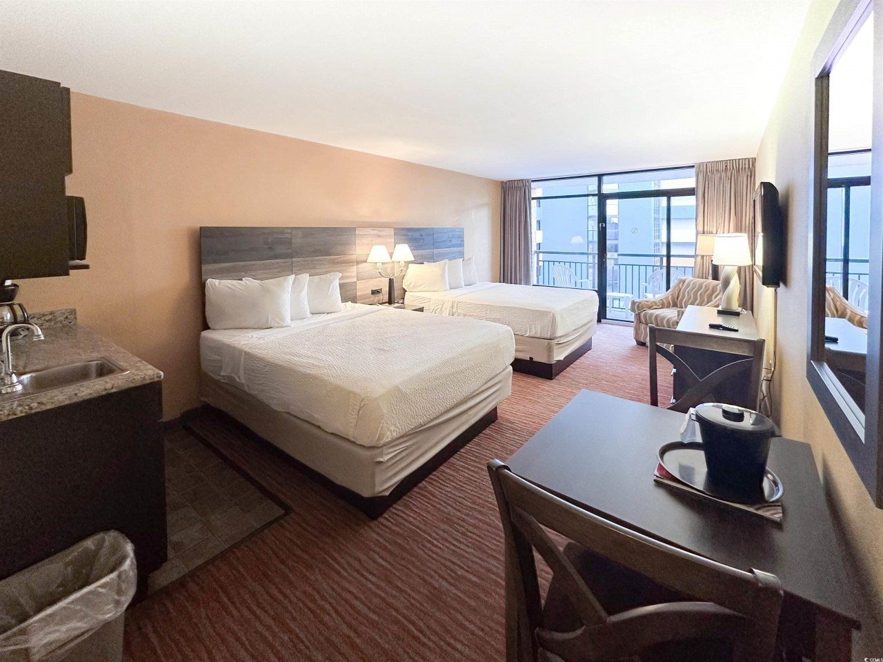 Beautiful efficiency size condo at Oceanfront Landmark Resort located on the in Myrtle Beach. Great STR investment for short term rental. See more at https://storybookviewer.com/91817-114411 Onsite at the resort is a WATERPARK, indoor and outdoor LAZY RIVERS, indoor and outdoor LARGE pools, HOT TUBS, SAUNA, GYM, an ARCADE, and RESTAURAUNTS. The HOA fee also includes electric, water & sewer, trash pickup, elevator & pool service, insurance, and pest control. It is just a short drive to everything Myrtle Beach has to offer including Myrtle Beach International Airport, Broadway At The Beach, The Market Common, Coastal Grande Mall, 2-Tanger Outlets, Barefoot Resort, and Coastal Carolina University (CCU), marinas, public docks, landings, restaurants, golf courses, shops, entertainment. Also, only 90 miles south to beautiful Charleston, SC.