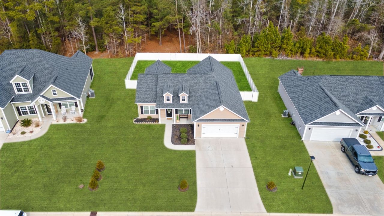 Experience quality craftsmanship and thoughtful design in this Hickory floorplan by Creekside Homes, a well-appointed 4-bedroom, 2-bath home offering comfort, space, and exceptional value. This beautifully laid-out home features a spacious open concept with solid wood kitchen cabinets topped with crown molding, stainless steel appliances, a pantry closet, and both a formal dining room with tray ceiling and a separate breakfast nookperfect for everyday living and entertaining. The large living room offers a vaulted ceiling and ceiling fan, creating an open and inviting atmosphere. An upgraded extra sliding glass door provides easy access to the extended 12 x 12 outdoor patio overlooking your private and fully fenced in yard, ideal for relaxing or hosting guests. The primary suite is a true retreat with a vaulted ceiling, ceiling fan, walk-in closet, and a well-appointed ensuite bath featuring a double vanity, garden tub, and separate shower. Three additional generously bedrooms and a full bath are positioned on the opposite side of the home, offering privacy and flexibility. Enjoy outdoor living with a spacious front porch, rear screened porch, and patio. Additional highlights include smooth ceilings, gutters, a fully sodded yard with irrigation, and a finished and painted garage with automatic door opener and pull-down attic storage. Durable and stylish vinyl flooring runs throughout the main living areas, bathrooms, laundry, pantry, and primary bedroom. Located in the highly desired Aynor school district, this home offers the charm of quaint country living just minutes from Conway, approximately 29 miles from Myrtle Beach, and about an hour from Florence. A perfect blend of peaceful living and everyday convenience, this home truly has it all. Schedule your showing today before this one is gone!