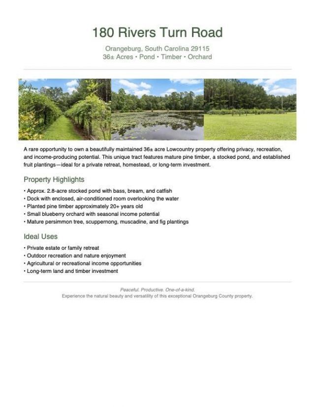180 Rivers Turn Road, Orangeburg, SC 29115.