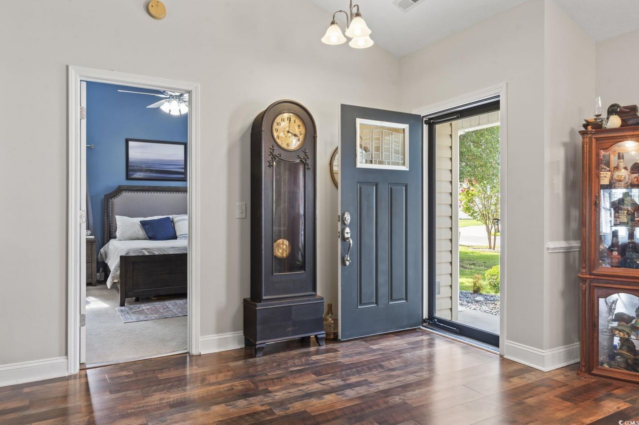 Single-level living Community boat launch Wooded privacy 4 miles to Market Common Located in Lawsons Landing, this 3-bedroom, 2-bath home offers one-level living with vaulted ceilings, natural light, and direct access to community amenities including a pool and private boat launch. Built in 2005 with approximately 1,736 heated square feet (2,268 total), the home backs to mature woods, providing a private rear setting with no homes directly behind. The open floor plan features high ceilings and wood flooring in main living areas, creating an airy feel throughout. The kitchen includes seamless one-piece countertops, updated dishwasher, stylish backsplash, and generous cabinet storage. Adjacent dining and living spaces allow for flexible furniture placement and everyday functionality. The primary suite includes a walk-in closet, dual vanities, soaking tub, separate shower, vaulted ceiling, and private water closet. Two additional bedrooms and a full bath are positioned on the opposite side of the home in a split floor plan layout. A mudroom/laundry room connects directly to the garage for practical daily use. Owner-stated updates include a newer roof, gutter guards, front door replacement, dishwasher, wood flooring, and more. The home also includes a transferable termite bond renewed in July. Outdoor features include a well-maintained yard with irrigation system and a wooded rear backdrop for added privacy. Located approximately 4 miles from Market Common, offering access to dining, retail, parks, and recreationwhile positioned away from high-traffic commercial areas. Lawsons Landing residents enjoy community pool access and a private boat launch, providing convenient water access without leaving the neighborhood.