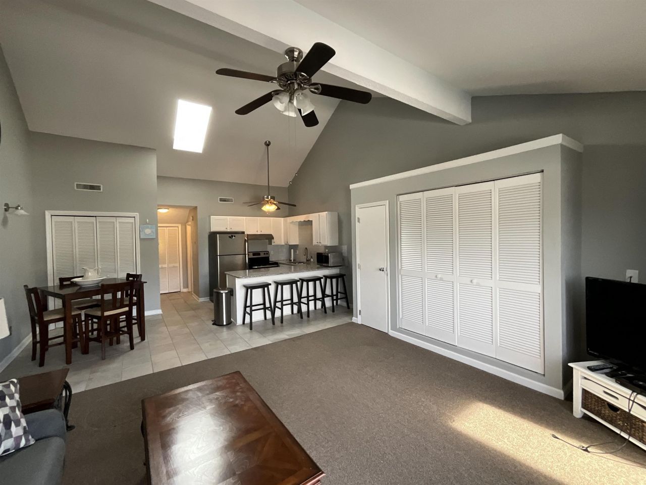 This efficiency unit is located in Golf Colony at Deerfield neighborhood in Surfside Beach, with just a few minutes drive to the beach, shopping and restaurants. Golf cart drive to the beach is permitted. This unit offers lots of natural light, new updated kitchen with granite counters, stainless steel appliances, tiles backsplash. Lots of closet space throughout the unit. It is very spacious, the pictures show how large the open space it. A murphy bed with new mattress. Hvac was updated in July 2025, washer/dryer new as of 2024. The outside deck overlooks the pool. This neighborhood and its HOA keeps everything very updated and clean, the buildings were updated within New paint, new deck, new roof, all work done between 2020-2025. Great unit, come make it your own! Short term/Long term rental are allowed.