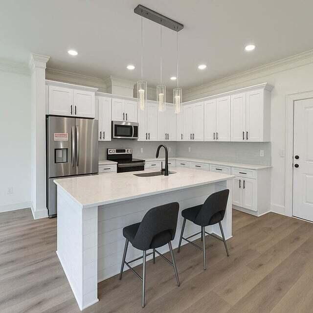 Beautiful new construction home in one of North Charleston's rapidly growing areas. This 3-bedroom, 2.5-bath property offers modern design paired with functional living spaces, making it an excellent option for both homeowners and investors.The open-concept main level features 10-foot ceilings, abundant natural light, and a well-appointed kitchen with quartz countertops, stainless steel appliances, soft-close cabinetry, and ample space for entertaining. A sliding glass door leads to the private backyard, providing easy indoor-outdoor flow for dining or relaxation.Upstairs, the primary suite includes balcony access, a double vanity, and an oversized tiled shower with rain head. Two additional bedrooms provide flexibility for guests, office, or additional living space, and a loft arearea offers added versatility. The second floor features 9-foot ceilings.Additional features include covered outdoor areas at the front and rear, custom interior details, and an attached one-car garage. Conveniently located near ongoing neighborhood revitalization, shopping, dining, and major corridors.