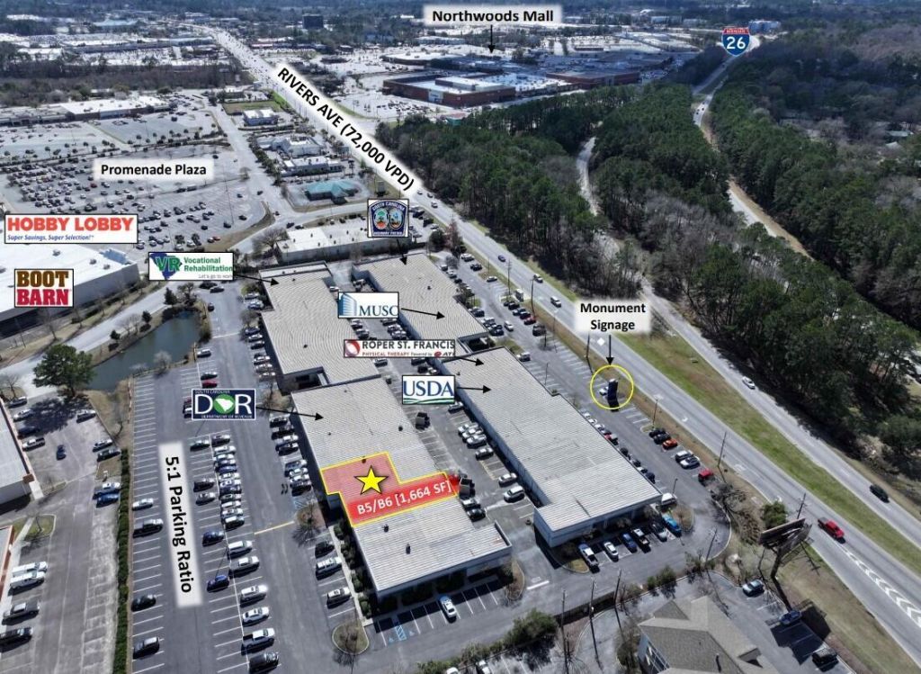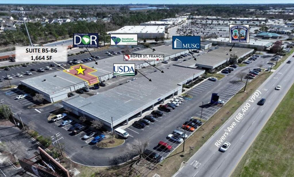 North Rivers Business Center is comprised of two buildings totaling 79,611 SF. The property can be accessed from Rivers Avenue or Northbrook Blvd. North Rivers Business Center is currently 98% occupied with a Tenant mix of medical, government and professional office space users; MUSC Children's Health Clinic, Roper St. Francis ATI, National Health Care SC, SC Department of Revenue, SC Disability Determination, and US Department of Agriculture are just a few of the diverse tenants that call NRBC home.