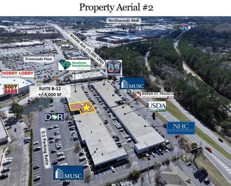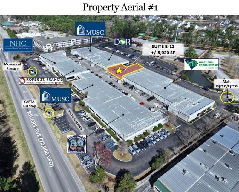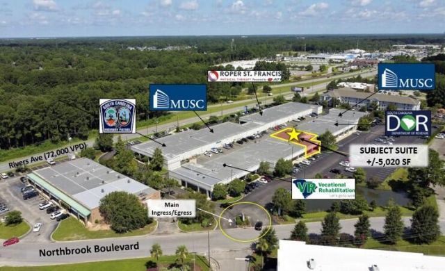 North Rivers Business Center is comprised of two buildings totaling 79,631 SF. The property can be accessed from Rivers Avenue or Northbrook Blvd. North Rivers Business Center is currently 98% occupied with a Tenant mix of medical, government and professional office space users; MUSC Children's Health Clinic, Roper St. Francis ATI, National Health Care SC, SC Department of Revenue, SC Disability Determination, and US Department of Agriculture are just a few of the diverse tenants that call NRBC home.