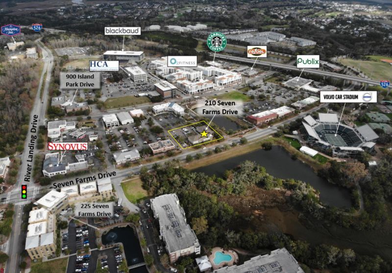 The Subject Property is located on Seven Farms Drive in the center of Daniel Islands' Commercial District. The building is within walking distance to the Islands' many shops and restaurants. This is a two story (17,446 SF) office building. The available space is located on the second floor and includes two bullpen cubicle spaces, two private offices, a break room, three conference rooms, and seven file/copy rooms.The space could be subdivided into smaller +/- 2,500 SF suites depending on Tenant needs -- this would require some construction modifications that may escalate the quoted price per SF.The building has frontage on Seven Farms Drive with parking and service in the rear. The building features views of two beautiful ponds and is also in close proximity to the Volvo Car Stadium.The property is being marketed in As Is condition. The asking rate is $28 PSF [Modified Gross]. Tenant responsible for electricity, gas, user fees, phone/data, and janitorial. Tenant improvement Allowance will be considered based on terms and conditions.The subject suite features two large bullpen areas, a break room, a conference room, private offices, IT closets, reception area and private bathrooms.