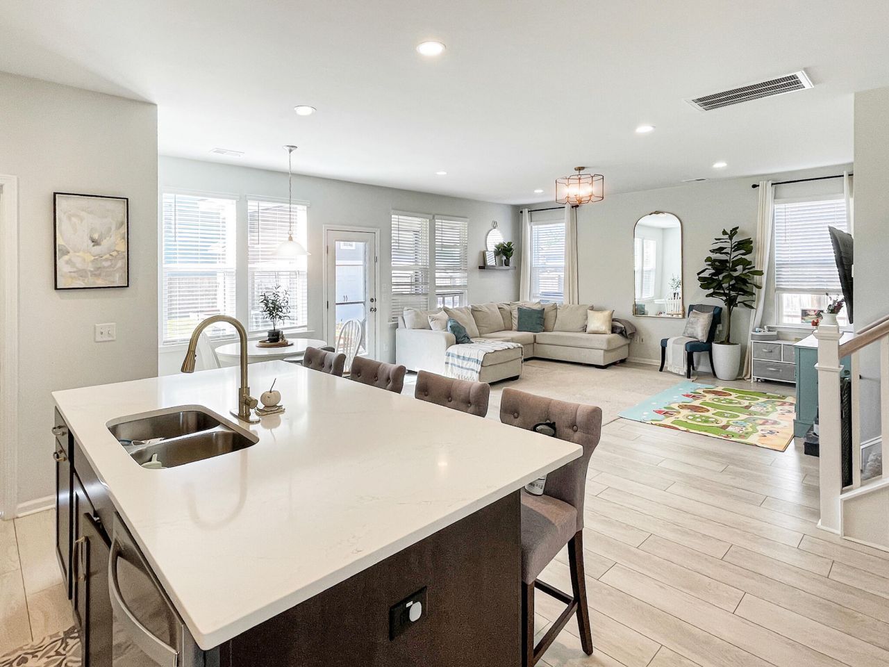 Step into this 5-bedroom, 3.5-bath Ravenwood model with 2,800 square feet of living space! Located in the Oakfield community on Johns Island, one of the area's most loved family neighborhoods. The main level features durable laminate flooring throughout. A first-floor primary suite with 2 walk in closets, tray ceilings, and recessed lighting. A dedicated dining room, a half bathroom and an open kitchen with beautiful quartz countertops, modern soft close cabinetry, and newer stainless steel appliances are also located on the first floor. A screened-in porch extends the living space outdoors and is connected to a patio that overlooks the huge fenced in backyard.Upstairs, you'll find four additional bedrooms that are thoughtfully designed with direct access to full bathrooms, alongwith a massive loft that opens to an elevated porch ideal for a playroom, media space, or flexible family living. Set on a large, fenced in corner lot, this home offers a generous yard with room to play, entertain, or put in a pool! Built in 2020 and thoughtfully maintained, the home's true value lies in its exceptional layout, prime location, and the strong sense of community that makes Oakfield so special. Residents enjoy Oakfield's amenities including two playgrounds, a zero-entry pool with a toddler splash pad, walking trails, and many green spaces - all walkable from this home!