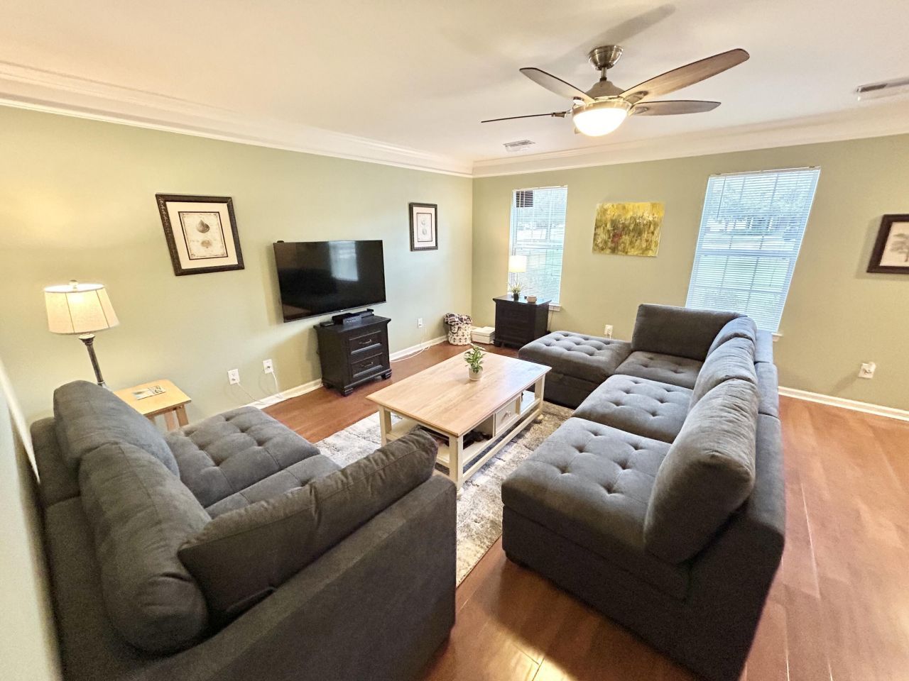 Fully Furnished! 6 Month Term. Available May 1st Located in Dunes West, this immaculate 3 bedroom 2 baths home offers a fully furnished short term opportunity (Available for 6 months. May 1st-October 31st. Perfect for folks building a home or new to the area. Home features ground floor bedroom, newer hvac, newer roof, hardwood laminate flooring, granite counters, brand new stainless appliance and new washer dryer, spacious living area, furniture, 3 Queen Beds, Flat Screen TV, dishes, silver wear, linens, dishwasher, storage and screened in patio. Move in ready! Looking for responsible short term tenant that will take of the home. Lawn maintenance included! Small pets will be considered. One Month Security deposit required. Contact today for a chance to live in this beautiful home!