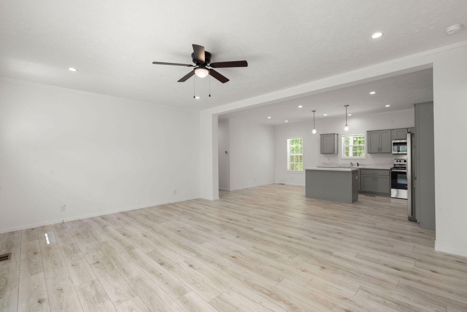 At 236 Gaines, room to live and room to grow come together on a generous 1.5-acre lot. This newly completed 3-bedroom, 2-bath home offers 1,820 square feet of thoughtfully designed living space. Inside, you'll find smooth 9-foot ceilings, luxury vinyl plank flooring, and an open-concept layout filled with natural light. The kitchen stands out with upgraded appliances, a spacious breakfast bar, and a large walk-in pantry, making it as functional as it is inviting. Built-in features add character, while ceiling fans throughout enhance everyday comfort. The owner's suite provides a private retreat, complete with a walk-in closet and an en suite bath featuring dual sinks, a soaking tub, and a separate walk-in shower. Blending modern finishes with a spacious setting, this home offers theperfect balance of comfort, style, and opportunity.