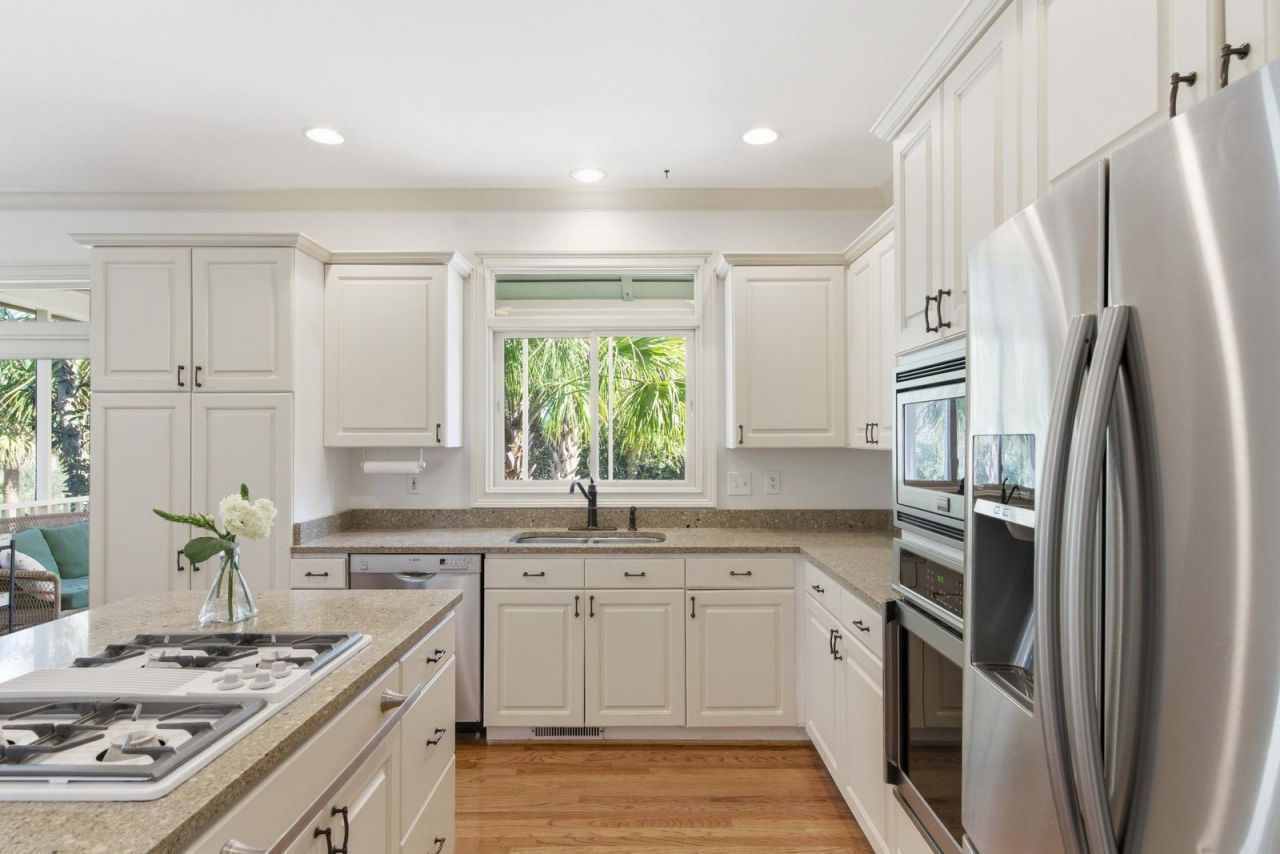 Set on a beautifully landscaped corner lot within Wild Dunes, this inviting 3-bedroom, 3.5-bath coastal retreat with a private saltwater pool offers an ideal island escape. Being offered fully furnished, the home is thoughtfully curated for a convenient buyer experience.Designed with entertaining in mind, the main living spaces flow effortlessly to the outdoor living areas, creating a natural extension between indoors and out. The kitchen opens to a screened porch overlooking the pool, while both the living and dining rooms feature sliding doors that lead to the expansive deck and patio. Surrounded by mature palms and live oaks, the outdoor setting offers a sense of privacy along with serene marsh views. The resort-style outdoor space is what sets this home apart. A large saltwater poolanchors the area surrounded by a spacious deck with room for lounging, sunbathing and al fresco dining. There is an outdoor shower with hot and cold water which allows for year-round use. Custom landscape lighting makes for a magical setting when enjoying these outdoor spaces in the evening hours.The main level includes a spacious kitchen with white cabinetry, a large island with seating for two, and an adjacent dining area. The living room, anchored by a gas fireplace and custom built-ins, connects seamlessly to the dining space, creating a bright and open layout filled with natural light. A conveniently located powder room completes this level.Upstairs, the owner's suite offers a private retreat with a walk-in closet, sitting area, and a balcony overlooking the pool. The en suite bath features dual vanities, a walk-in shower, and a soaking tub. Two additional guest bedrooms, each with its own en suite bath, share access to a generous deck--an ideal spot to relax and enjoy the coastal setting.The ground level provides an enclosed garage with parking for three or more vehicles, along with ample storage for beach gear. A brick-lined driveway accommodates additional parking.Homes with private pools in Wild Dunes are limited, making this a compelling opportunity to own in one of the Lowcountry's most sought-after beachfront communities.