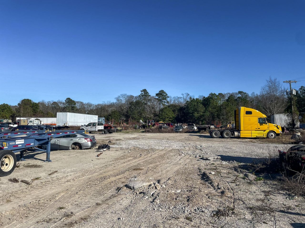 Warehouse/office building sitting on 9.24 acres being offered for sale just off I-26, exit 159 in Bowman, SC. Located 1 hour from both Columbia & Charleston, this site is zoned Commercial General in Orangeburg County. The cleared fenced-in laydown yard is 5-acres and includes a 9,600 SF building (8,640 SF warehouse and 960 SF conditioned office) with (8) 14' x 16' roll-up doors, 18' clearance and 21' center height. Electric, Water, and Sewer service are all available on site. Ideal for trucking operations, vehicle storage, or building materials supply. The cleaned-up aerial image represents what the property is expected to look like once the current owner vacates and the site is cleared. The enhancement is for illustrative purposes only and reflects the property's potential condition.