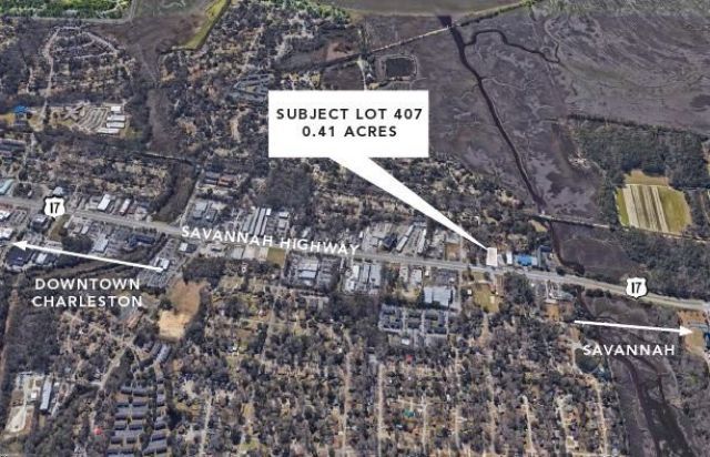 A 0.41-acre lot for sale on Savannah Highway. The site offers approximately 90' of frontage on Savannah Highway. 2525 Savannah Highway provides the opportunity for new development in a tight market. Currently zoned CC-Community Commercial which allows for a variety of uses.