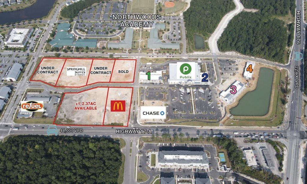 The intersection of N. Main (Hwy 17-A) and State Road (Hwy 176), known as Carnes Crossroads, is rapidly emerging as the epicenter of growth in the Summerville and Goose Creek markets. The Marketplace at Carnes Crossroads will be the retail focal point of the area, creating a true sense of place for the residents in the surrounding neighborhoods. It will be anchored by a +/-48,910 square foot Publix grocer and provide over 41,000 square feet of retail space. With numerous restaurant opportunities overlooking the lake with exceptional outside dining experiences and over 10 acres of outparcel pads, The Marketplace at Carnes Crossroads will be a destination point for years to come.Currently pre-leasing retail and restaurant spaces for opening in summer 2025.