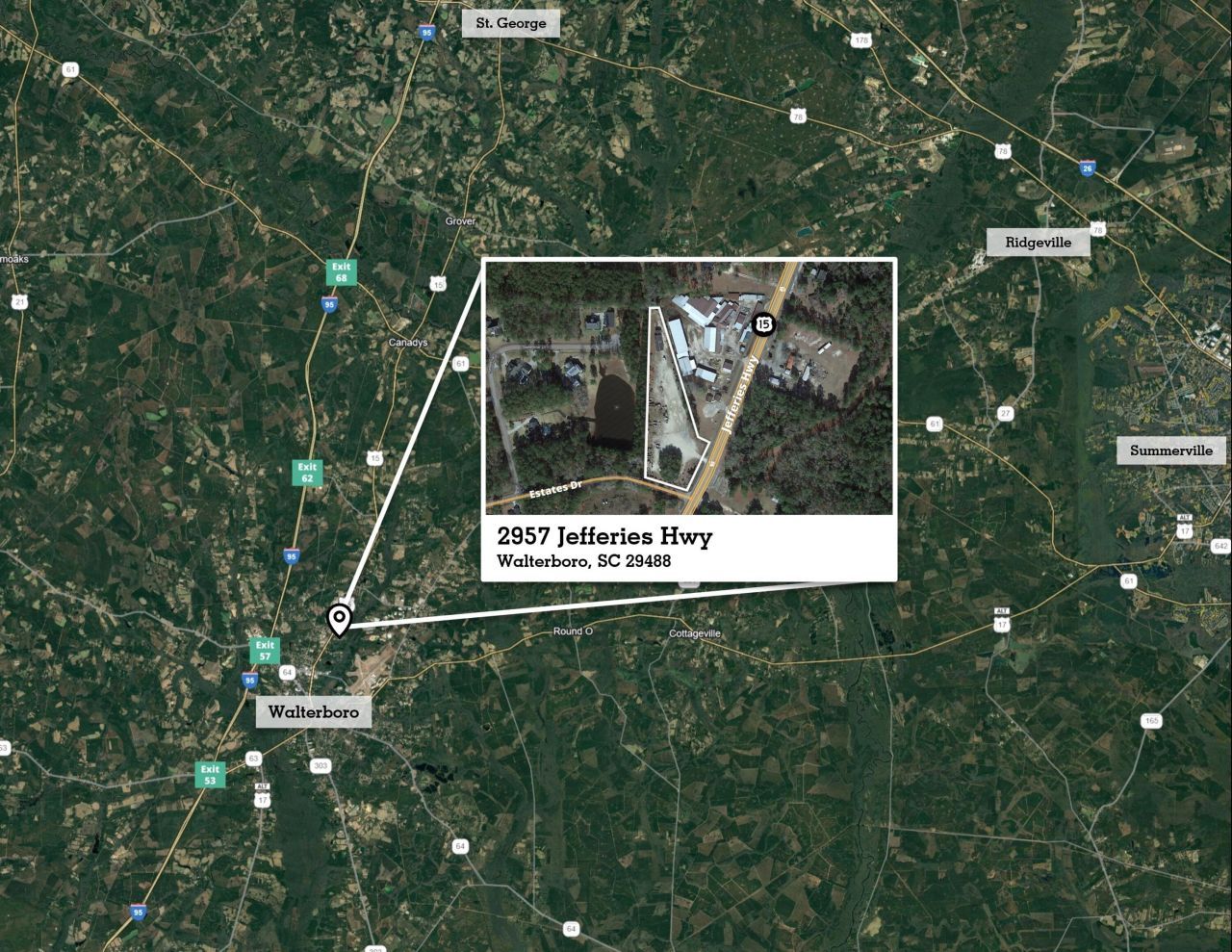 2957 Jefferies Highway, Walterboro, SC 29488.