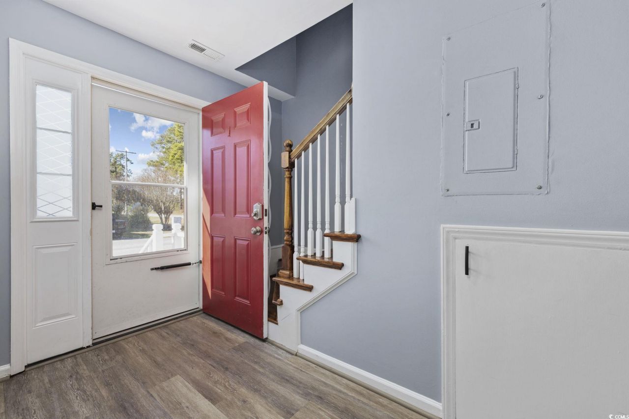 Move-in ready END-UNIT TOWNHOUSE just minutes from the ocean in the heart of Myrtle Beach. This beautifully updated 3-bedroom / 2.5-bath townhouse with a dedicated office on the first floor offers exceptional space, modern upgrades, and a highly desirable coastal location a rare combination at this price point. Located in Canterbury Village, this community is tucked away from traffic and noise, yet conveniently close to the beach, shopping, dining, and entertainment, including Broadway at the Beach. Whether youre searching for a primary residence, second home, or long-term rental, this property delivers flexibility and strong value. The main level features an open and inviting layout with luxury vinyl plank flooring and no carpet anywhere in the home. A spacious living area anchored by a wood-burning fireplace creates a warm and comfortable setting. The updated kitchen includes granite countertops, white cabinetry, stainless steel appliances, bar seating, pantry storage, and a modern tile backsplash, flowing seamlessly into the dining area ideal for everyday living and entertaining. A dedicated office space on the first floor adds versatility for remote work or a home study, along with a convenient half bath. Upstairs, youll find three generously sized bedrooms, all located on the second level. The oversized primary suite offers three closets and a private en-suite bath. Two additional bedrooms share a full bathroom. A full-size washer and dryer are also located upstairs for added convenience. Outdoor living includes a private rear patio and an exterior storage closet, perfect for beach gear and additional storage. Residents also enjoy access to a large community pool. With end-unit privacy, no carpet, modern upgrades, a functional 3-bedroom upstairs layout with a first-floor office, and close proximity to the beach, this townhouse stands out in central Myrtle Beach. Townhomes of this size, condition, and location rarely become available schedule your showing today!