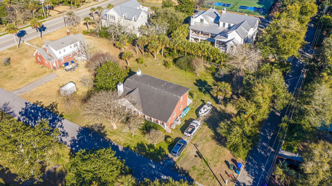 0.36-acre corner lot at Florence St and Poe Ave, that backs up to Officers Row. This is an exceptional opportunity to build in one of the most desirable and private pockets of Sullivan's Island, just a quick golf cart ride to everything Middle Street has to offer and an even quicker walk to the beach. An existing 6BR/3BA residence sits on the property and presents a true tear-down opportunity. With no grand trees impacting the buildable area, the lot is a clean slate for new construction. The property measures approximately 130' x 120', with additional right-of-way along Poe Ave that makes it feel even larger.Under Sullivan's Island zoning, the principal structure allows approximately 3,468 SF by right, with the potential for up to 500 additional SF with DRB approval, for approximately 3,968 SF of heated and cooled space. This does not include porches, pool, or garage. The property is located in an AE-10 flood zone bordering an X zone.