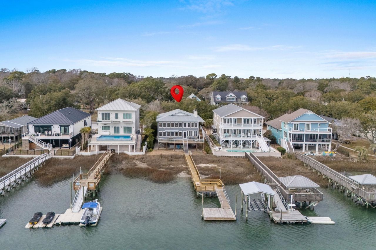 Introducing 3111 First Avenue South, an exceptional inlet-front property in the heart of Murrells Inlet. Perfectly positioned along the inlet with expansive views of the Garden City Beach peninsula, this home offers private dock access and an authentic waterfront lifestyle rarely found in this corridor. From your backyard, enjoy panoramic marsh and water views that stretch across the inlet toward the peninsula. The private fixed and floating dock provides the ideal setting for boating, fishing, or simply soaking in breathtaking sunsets. Enjoy fishing in the inlet and back creeks, or cruise by boat to dinner at the Murrells Inlet MarshWalk. Launch from your dock and head straight to the Atlantic Ocean through the Garden City Jetties a rare opportunity for serious anglers and boating enthusiasts. For added convenience, a small neighborhood boat landing is located just five lots away, making it easy to launch smaller boats and watercraft. Uniquely designed, each level of the home mirrors the other, offering two fully functional living spaces. Both floors feature a large kitchen, two bedrooms, two bathrooms, spacious Carolina rooms, and enclosed porches that add comfortable, year-round living space. Each level also includes a generous pantry and laundry area, along with warm and inviting living rooms centered around fireplaces. An interior staircase connects both levels, allowing easy access throughout the home and creating a versatile layout ideal for multigenerational living, guests, extended family, or a variety of flexible uses. The spacious waterfront deck with an electric retractable awning extends the living area outdoors, creating the perfect space for entertaining or relaxing while enjoying the coastal breeze in both sun and shade. Underneath the home, you will find three separate storage areas providing ample room for tools, fishing gear, and additional storage needs. There is also generous covered space to store boats, paddle boards, kayaks, and other coastal equipment, along with an outdoor shower for rinsing off after a day on the water. The ground level offers even more potential if a future owner desires to create an expanded outdoor entertaining area. Surrounded by established homes along this stretch of the inlet, the property presents an excellent opportunity to enjoy as-is or renovate into a customized waterfront retreat. Significant updates have already been completed, including Hardie Plank siding and exterior paint (2021), HVAC replacement (2021), new ductwork downstairs (2023), dock updates (2023), floating dock (2023), new awning (2024), and a new roof (2024). Additional improvements include a 50-gallon water heater (2021), roof repairs (2023), and various interior enhancements. These investments provide a strong foundation for future personalization. Located just minutes from the MarshWalk and local dining, this property combines location, private dock access, amazing marsh views, and the added benefit of no HOA key c