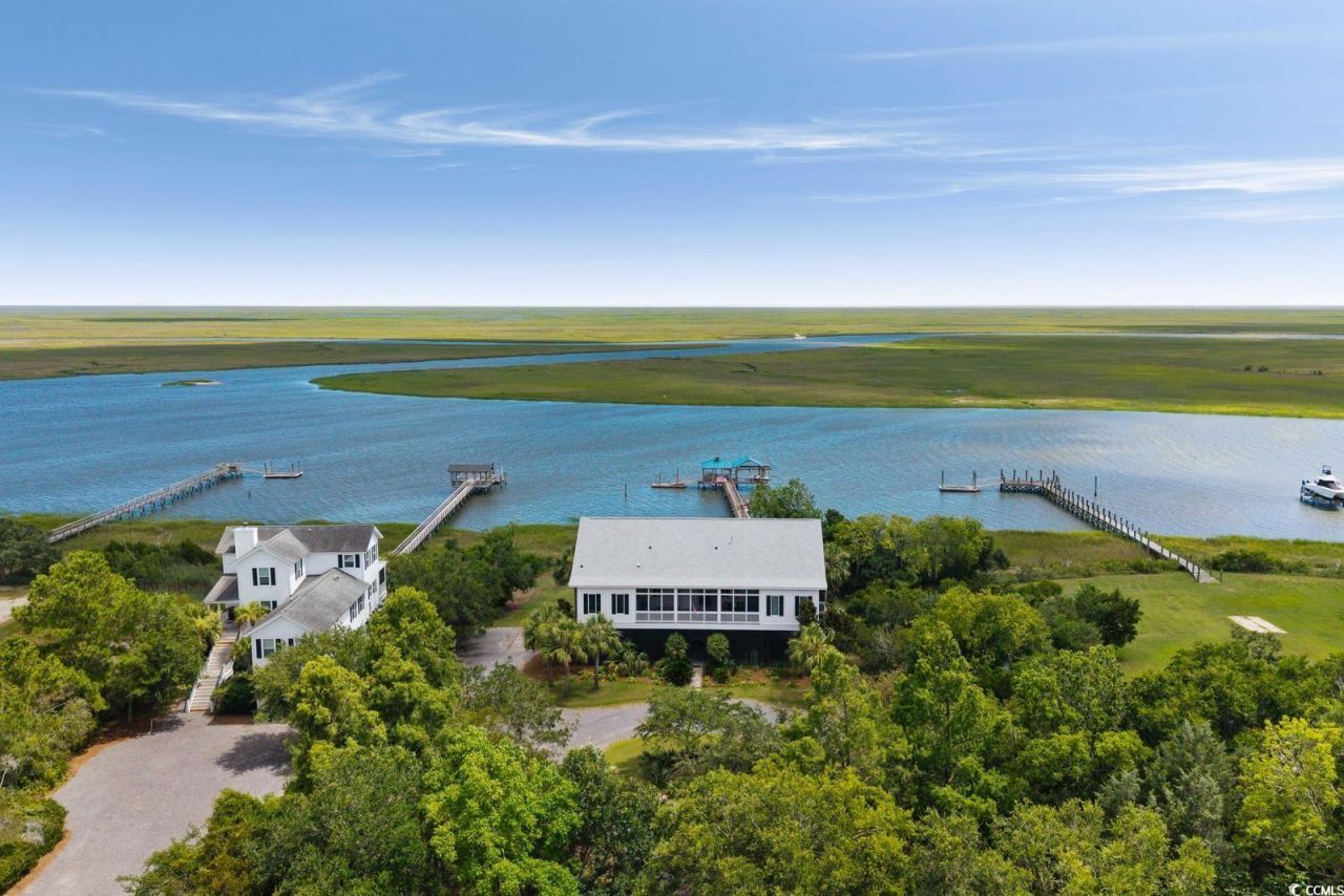Welcome to 315 Lofton Ct - This unique waterfront property is located in the idyllic town of McClellanville. The 3+ acre lot encompasses stunning and panoramic views of the intracoastal waterway, Five Fatham Creek and the 65,000-acre wildlife preserve of Cape Romain, including its landmark lighthouse. This custom-built waterfront retreat beckons for family gatherings both inside and out. Designed with a love of the Lowcountry in mind, the home radiates true Southern charm with its tree-lined entrance of Oaks. Once entering the home, the local cypress woodwork on the walls, ceilings and cabinetry exudes an inviting warmth that gives a sense of peace and comfort. Antique heart pine flooring throughout further adds to the warm aesthetic of the home. For one level living, there is a sense of privacy as the bedrooms sit on opposite sides of the vaulted great room - A spacious primary en-suite on one side and two additional bedrooms, plus full and half bath on the other. Views are seen from nearly every room and The Carolina rooms enchanting panorama does not disappoint. The common areas include a lovely open-concept great room with fireplace, wet bar, kitchen and dining area that comfortably seats fourteen. Large screened-in porches are located on the waterfront and back sides, capturing the most amazing sea breezes. The views on the ground level are equally breathtaking and provide an excellent outdoor entertainment space. There is a fixed dock with a boat-lift, as well as a floating dock offering deep-water access. The raised-house architecture provides adequate height and space underneath for boat and vehicle storage. There is an elevator underneath the home that provides convenient access to all levels, including the top floor/attic area where plumbing, electric and insulation are completed, leaving only the finish work to make your own. This top floor could easily expand the interior space with a large sitting area and two more bedroom suites - plus additional water views! Come experience extraordinary waterfront living with timeless charm and co-exist with the porpoises and coastal seabirds that are sustained by the pristine barrier islands, salt marshes and tributaries that comprise the waterway and nature preserve. Perfectly nestled between Charleston and the Grand Strand beaches, yet a world away, the fishing and shrimping village of McClellanville possesses small-town charm, untouched natural beauty and a multitude of outdoor recreational opportunities. This Lowcountry oasis will undoubtedly provide a lifetime of unforgettable memories and splendor.