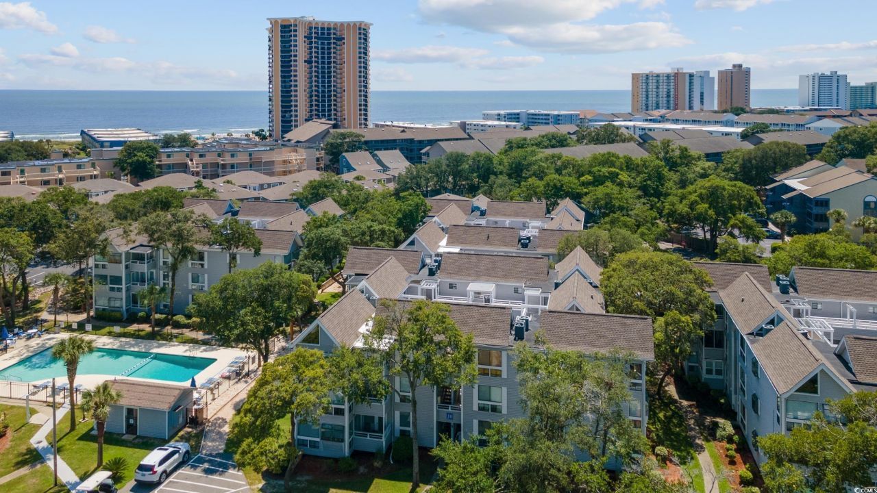 Hands down the nicest condo in this community. Beautifully remodeled 2/2 condo a block from the ocean. Fully furnished with large windows and vaulted ceilings, lots of natural light. Kitchen renovated new cabinets, granite counters, stainless appliances. Both baths renovated with walkin tile showers, new cabinets. Lots of new furniture. This is a turnkey condo with great potential as rental. 3 blocks to the longest wooden pier on the east coast. Owners are allowed golf carts, however, there is a waiting list. This community is known for its amenities... 2 pools, sauna, steam room, playground, 6 picnic areas and grills. Tennis/pickleball court, Workout Rm, Onsite Sports Bar & Grill (Harry the Hats) and an arcade with pool tables & video games. 4 minutes to Barefoot Landing, Tanger Outlets, Bass Pro Shop, and Walmart.