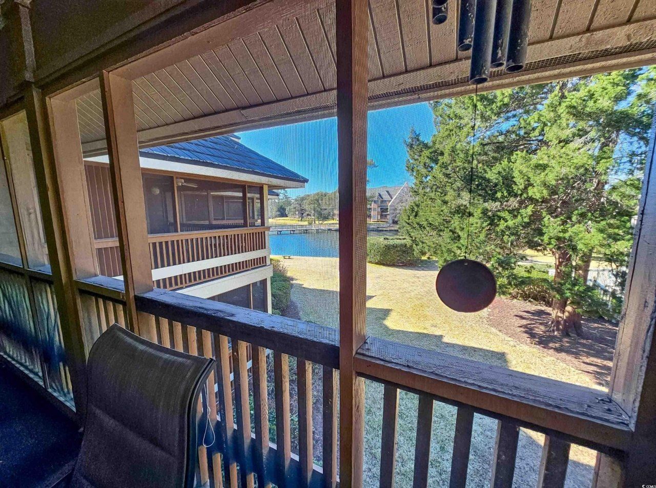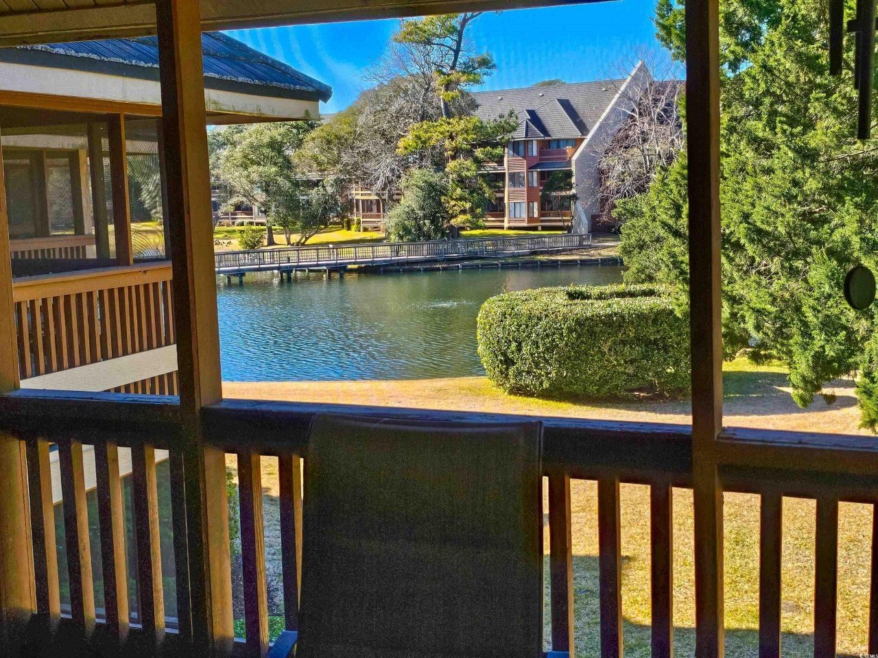 Beautiful lake view from this large screened-in porch that has extra storage attached, great for storing things. This two-bedroom, two-bath lodge has over 1,100 total square feet. The kitchen has granite countertops and tile flooring with LVP throughout the home. Large master suite that steps out onto the porch and has a walk-in closet. Split bedroom plan. Sold furnished. This property has its own private pool on the lake and just steps to the ocean. Located inside the Kingston Resort, this 145-acre planned community is in the heart of Myrtle Beach with great amenities. Oceanfront hotel, restaurants, fitness center with indoor pool, tennis and pickle ball courts, golf simulators, and putting green (additional fee). The resort has over a 1/2 mile of sandy beaches, 24-hour security, and a gated community. Great primary residence, second home or rental option. Some resort amenities are only available through the Hilton on-site rental program.
