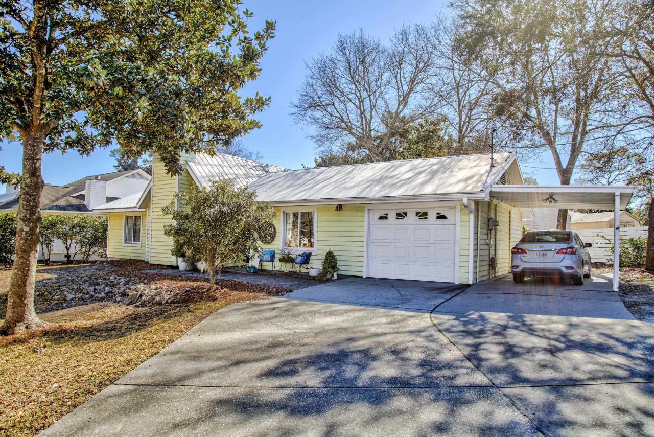 Located in the highly desirable Golden Mile area of Myrtle Beach, this charming 3-bedroom, 2-bath home is just a short walk or easy golf cart ride to the beautiful Atlantic Ocean making everyday beach access part of your routine. Whether youre seeking a full-time residence or a second home, this property offers the relaxed coastal lifestyle Myrtle Beach is known for. Inside, the bright and open floor plan features vaulted ceilings, bamboo wood flooring, and a cozy wood-burning fireplace that adds warmth and character. The kitchen includes solid surface countertops, ample cabinetry, and generous workspace, opening to the dining area with direct access to the deck and patio, perfect for indoor-outdoor living. Recent improvements include a new hot water heater and an HVAC system that is regularly inspected and professionally maintained. Outside, enjoy a private fenced yard with storage shed, along with abundant parking that includes a front turnaround, heated garage with insulated door, and carport. Short-term rentals are not permitted in the City of Myrtle Beach, preserving the residential feel of this well-established neighborhood.