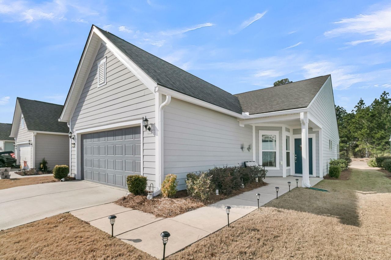 Pristinely kept Noir Coast situated on a homesite backing up to a landscaped berm wooded homesite offering incredible privacy. Located in the highly desirable 55+ active adult community in a prime Summerville location, Del Webb Nexton. Once inside, you will notice a kitchen that offers plenty of room for entertaining as well as an eat-in kitchen, the perfect place to enjoy your coffee next to the bay window. This oversized kitchen is complete with granite countertops, subway tile backsplash, and stainless steel appliances with slide-in gas range is conveniently located next to the two car garage with separate owners entry area for easy drop off. Laminate floors extends from the foyer, to the kitchen, living areas and sunroom. The light filled sunroom is located at the back of the home...leads you outside to a patio with landscaped and wooded views. Back inside, the Primary bedroom includes a tray ceiling and en-suite bath with dual sink vanity with granite countertops, framed mirrors, tile floors, walk-in tile shower with frameless shower door, built-in bench, and large walk-in closet. The second bedroom and full bathroom is tucked down a separate hallway. Be part of the Charleston area's premier 55+ lifestyle community, Del Webb Nexton. Just a short golf cart ride to two grocery stores, restaurants, Pickleball bar, shopping, and so much more! Only five minutes to charming historic downtown Summerville and 25 minutes to Charleston! A 27,000 square foot amenities center with indoor and outdoor pools, sport courts, and fitness center, plus a full-time lifestyle director with clubs and planned community events. Additional community amenities are being added and will include a new 30,000 sf gymnasium and event hub with a built-in stage to host large-scale events like community parties and concerts, an indoor sport courts, and walking track. A poolside bar & grill will be added as well as additional outdoor pickleball courts. This community has it all! Skip the hassle of building and the additional move-in costs, this home is turn key with all appliances, window treatments, ceiling fans, and attached lighting included. Please book your showing today!