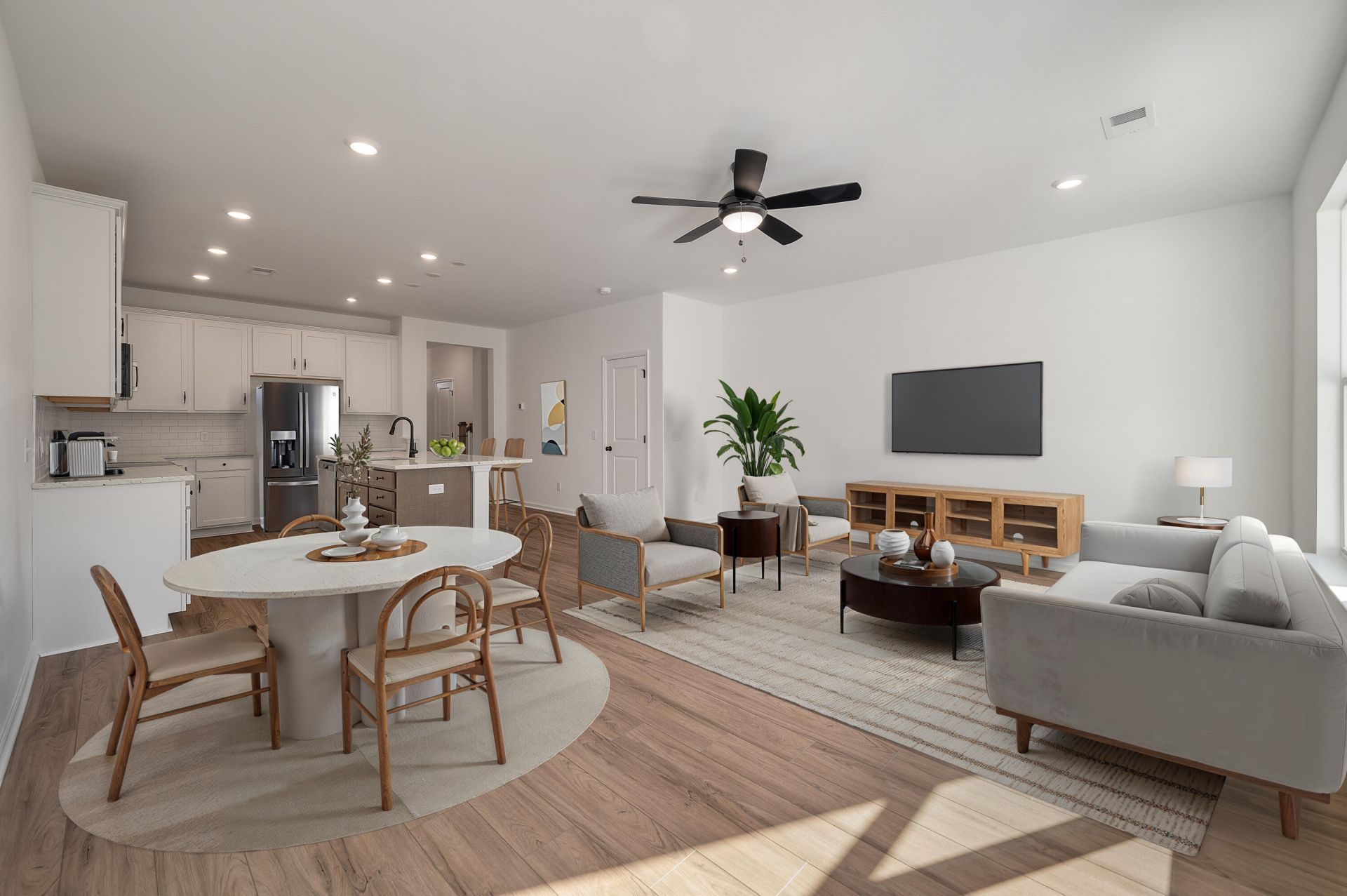 Move-In Ready! 4.99% Fixed Interest Rate for qualified buyers. FRANKLIN 1st floor: Features a 1-CAR GARAGE Townhome! Plus, front covered porch entry. True foyer that offers a powder room, and a coat closet. 42'' cabinets in the kitchen! Lots of storage plus a walk0-in pantry! Large work island with sink; perfect for entertaining or baking. A spacious great room completes the open layout 2nd floor: two guest bedrooms and shared bath with a tub at the end of the unit. A laundry closet and linen closet sit along the stair rail, leading to the primary bedroom, which features two closets and a private bath with a stand-up shower and water closet and double sink vanity.Stainless Steel Side By Side Refrigerator, Washer/Dryer and Blinds Included! A Must See!