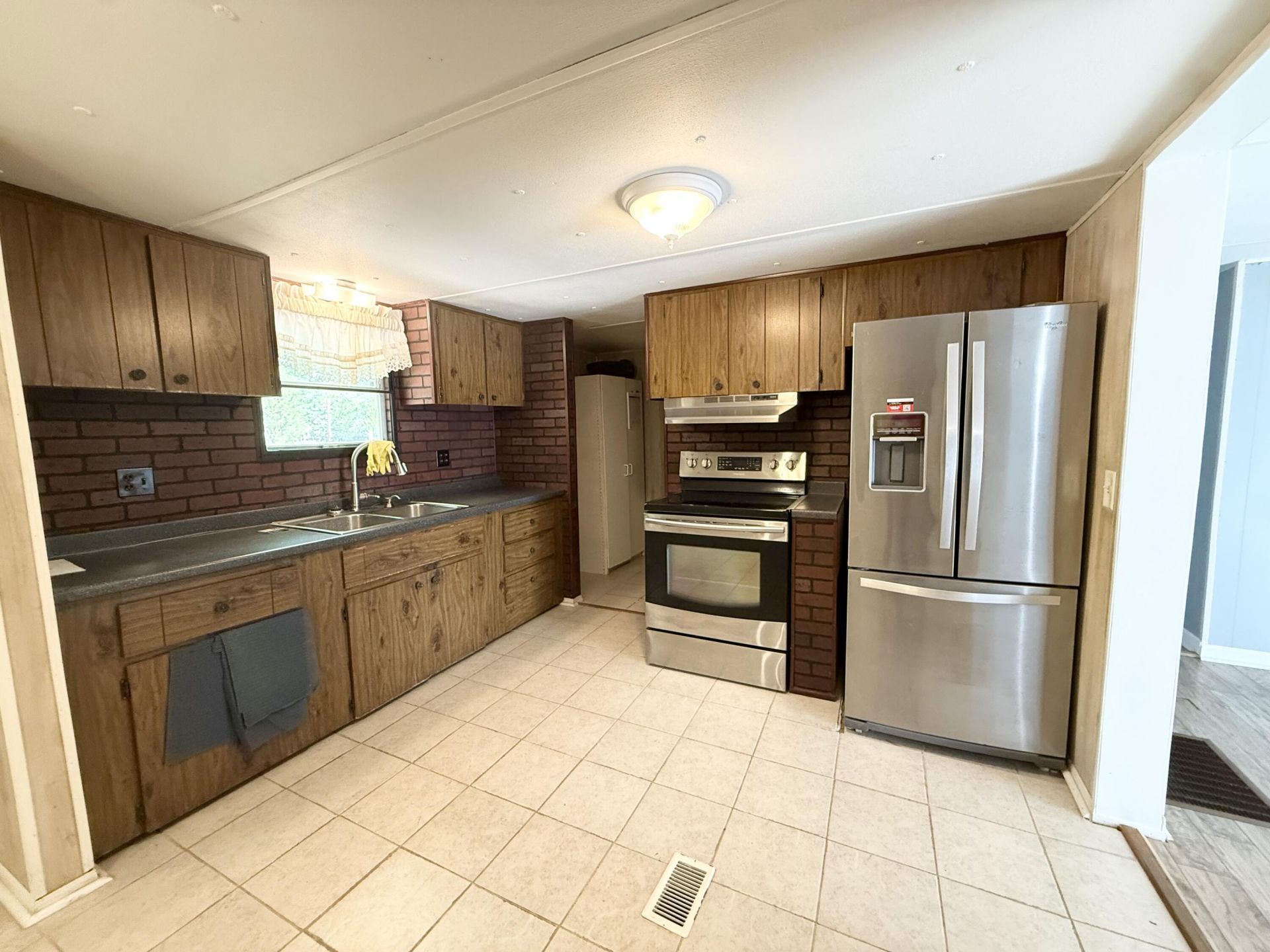 This 3 bed, 2 bath doublewide features a spacious kitchen with stainless steel appliances and plenty of storage space, a dining area, sliding glass doors that go out to the backyard, vinyl siding and a metal roof.The property is located on a 0.35 acre lot in town and there is also and a 16'x23' shed in the back yard.