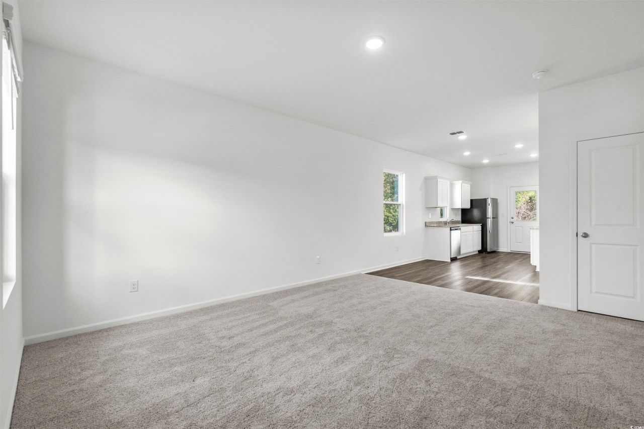 Nestled on a spacious lot, this single-story home offers a tranquil retreat with a picturesque view. Boasting three bedrooms and two bathrooms, this residence provides a comfortable and inviting living space. The modern kitchen is a standout feature, showcasing elegant granite countertops and sleek stainless steel appliances. All appliances included, even refrigerator, washer, and dryer. The serene backyard overlooks the serene trees, creating a peaceful ambiance and backdrop for outdoor gatherings or quiet moments of relaxation. Just a short trip away from the beach, residents can easily access the sandy shores and enjoy the coastal lifestyle whenever they desire. Embrace the perfect blend of comfort, style, and natural beauty in this charming home that offers a harmonious balance between indoor elegance and outdoor tranquility. Pictures are of a completed home in the neighborhood.
