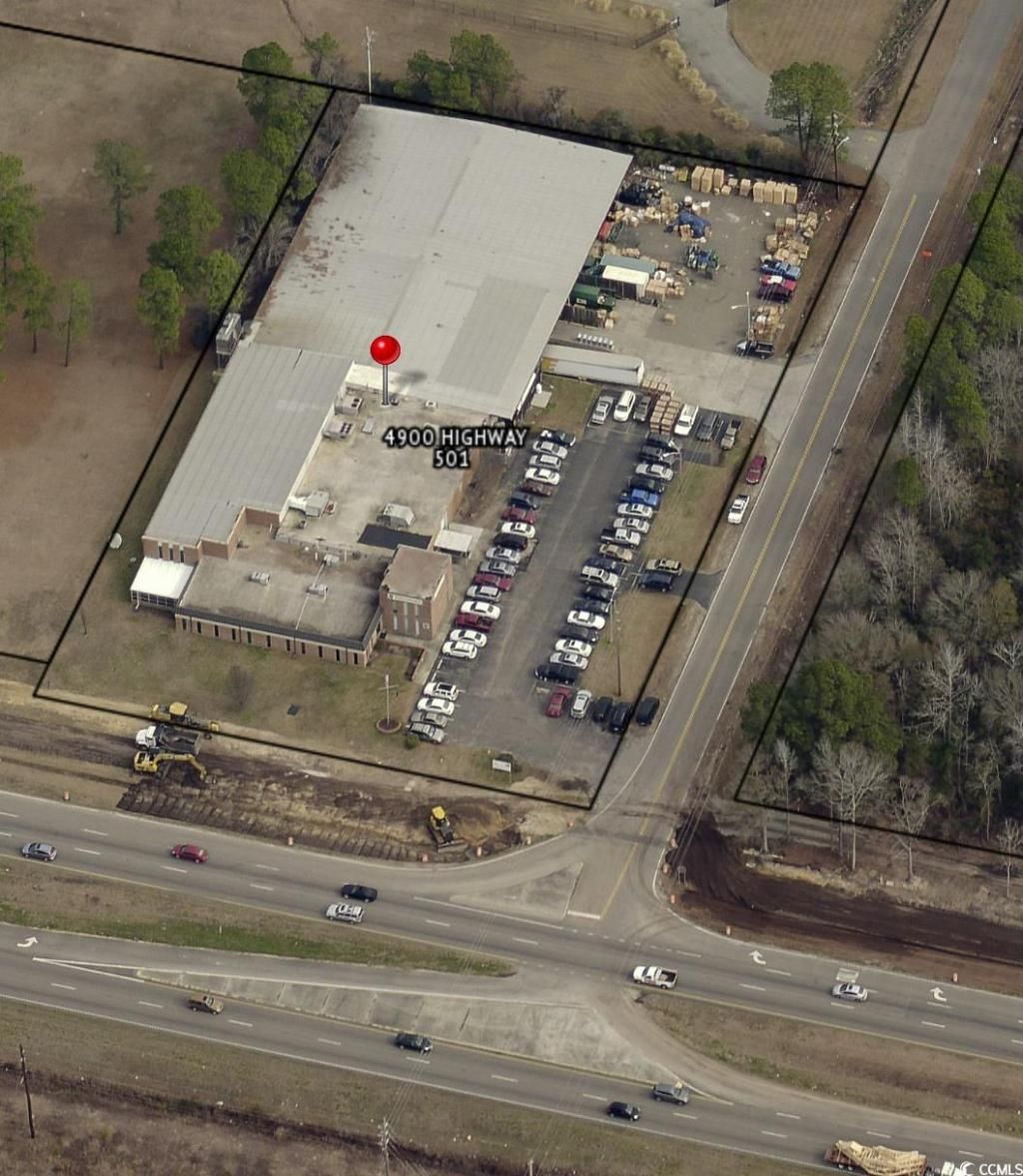 Available 20,000 sqft up to 49,900 sqft! Marek Property Advisors is proud to offer 4900 Highwy 501 for lease. Well positioned on Highway 501 with excellent frontage visibility. This 40,936 sqft flex space/warehouse is exceptionally tailored for manufacturing and distribution with 2 roll-up drive-in doors and 2 dock-high doors (one electric and one manual). 208 volts 3-phase power is located in each warehouse with water access for machinery and I-beams for lifts throughout the warehouse as well. The office space offers 8 offices in the main building, conference room, full break room and multiple records rooms and an outdoor screened porch offering another break area. The two-story office space in the front is arranged with the first floor designated for sales, call center, management, and conference rooms, while the upstairs boasts additional executive offices and an overview of the entire facility. Within the warehouse there are additional offices for floor managers, parts rooms, storage and mechanical areas. Property offers recent upgrades with new HVAC units on the roof and interior improvements in the main office area including carpet and paint. 2 of the 3 warehouse areas are climatized. Last warehouse area on the right with dock high doors is not. Property is located approximately 2.5 miles from Highway 31, 5.2 miles from Highway 17, 8 miles to downtown Myrtle Beach and 55 miles to Highway 95. Ideally located with excellent access for semi-trucks and other delivery suppliers. Plenty of parking for staff with approximately 50 spaces.