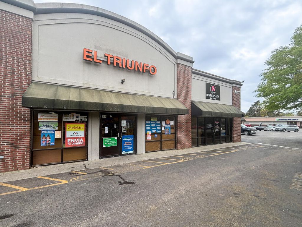 Property has excellent visibility on Dorchester Road. Tenants in the center include EL TRIUNFO (Mexican grocery store), Hazel & Hanks Gourmet Market, and Taste of Thai Express.