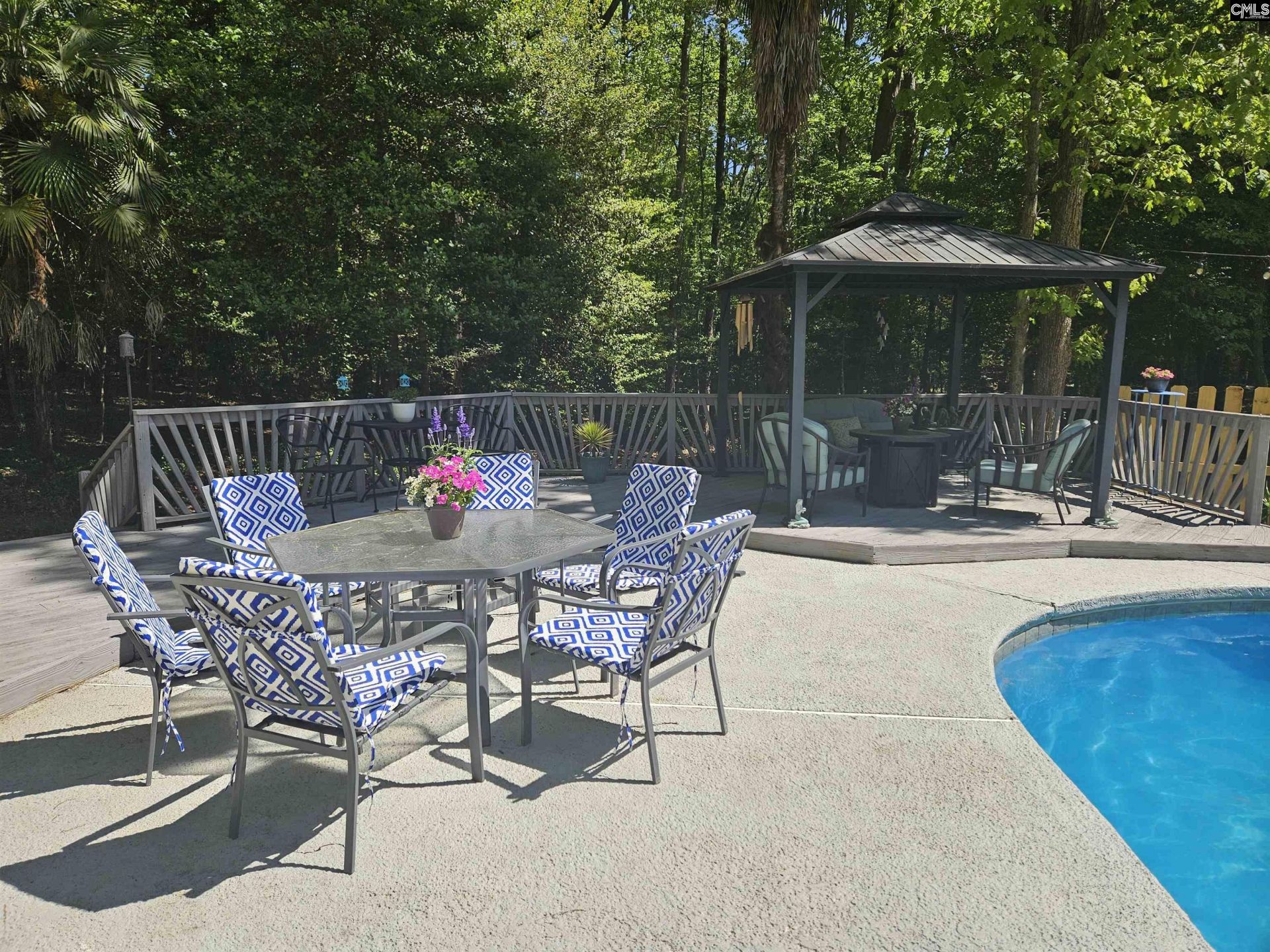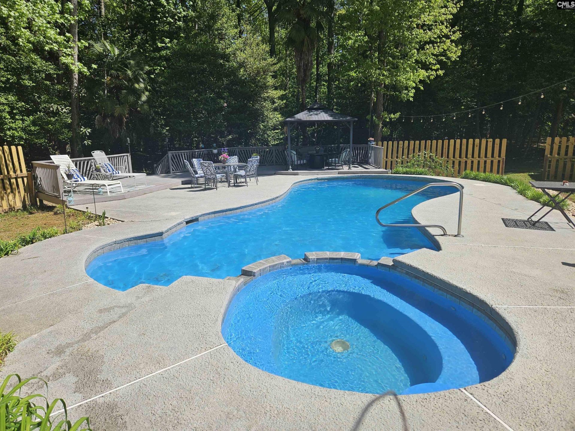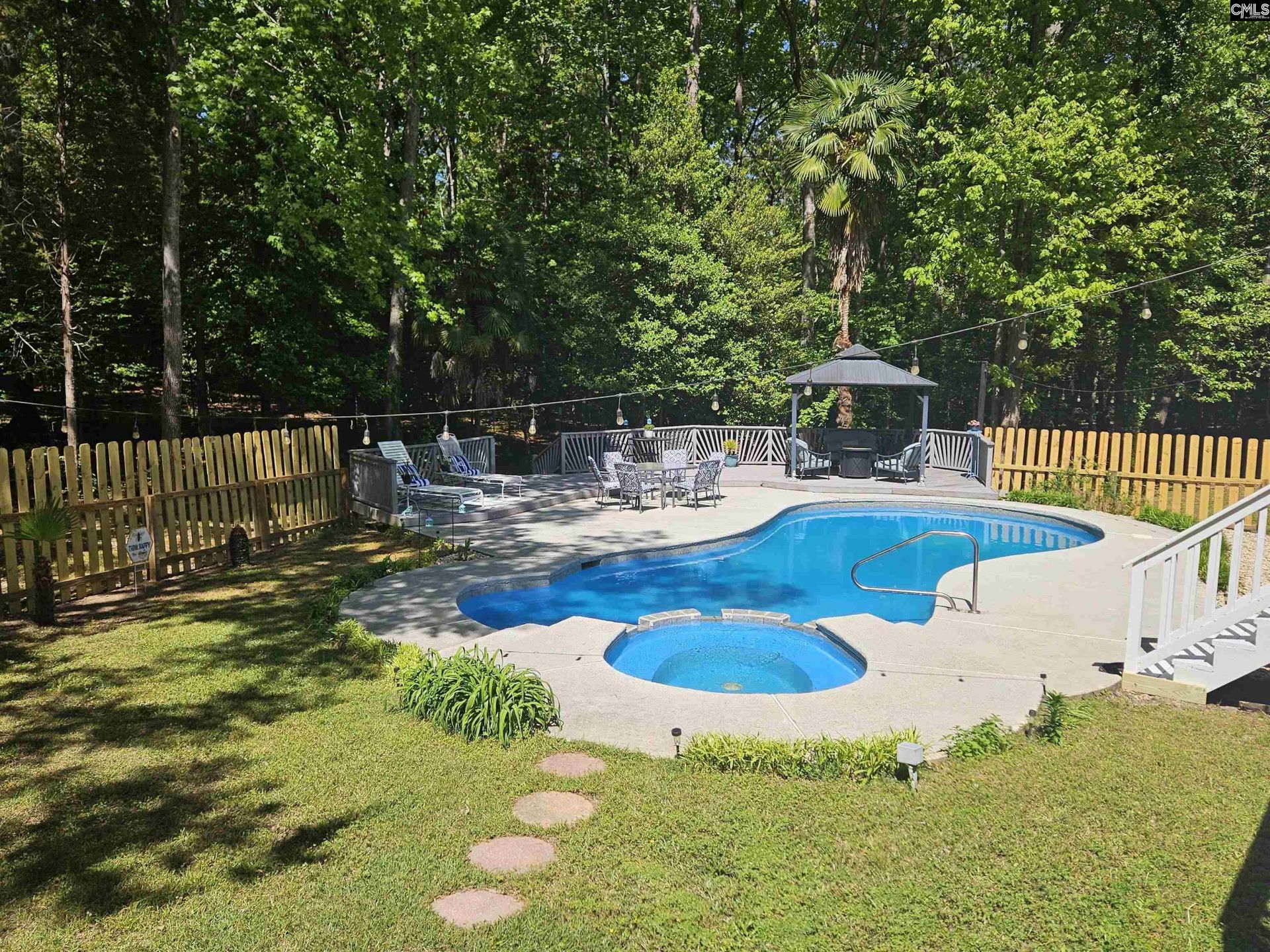Set on a stunning 2.1- acre corner lot in award-winning Lexington School District one, this impressive home offers a rare blend of privacy, space and refined comfort Surrounded by expansive grounds and generous distance from neighboring homes, the property delivers a peaceful, secluded setting that feels like a private estate. Inside, the home offers four bedrooms with a flexible 5th bedroom option ideal for an in-law suite, private apartment or older child's retreat. That space includes its own mini-split, full bath with walk in shower and kitchenette that can be closed off from the main house, creating exceptional versatility.. A large pantry, built-ins, formal dining room , eat-in kitchen with french doors, spacious bedrooms and a primary suite with its own fireplace add to the home's charm and livability. Recent updates include 2 renovated bathrooms, a updated kitchen, new flooring, all new windows, new roof w 30-yr architectural shingles, and a fully wrapped aluminum exterior with new vinyl shutters.The great room provides an inviting gathering place with cozy fireplace. Designed for both relaxation and entertaining, the outside amenities are truly impressive. The in-ground gunite pool with Jacuzzi serves as the center piece of the backyard, complemented by a extended deck with walkway to the driveway, abundant parking,a circular driveway and room to add a large shop if desired. A gazebo and pool furniture, lights convey with sale and a transferable termite bond adds piece of mind. This is a beautiful maintained property that combines luxury, comfort and the kind of privacy that is becoming increasingly hard to find. Disclaimer: CMLS has not reviewed and, therefore, does not endorse vendors who may appear in listings.