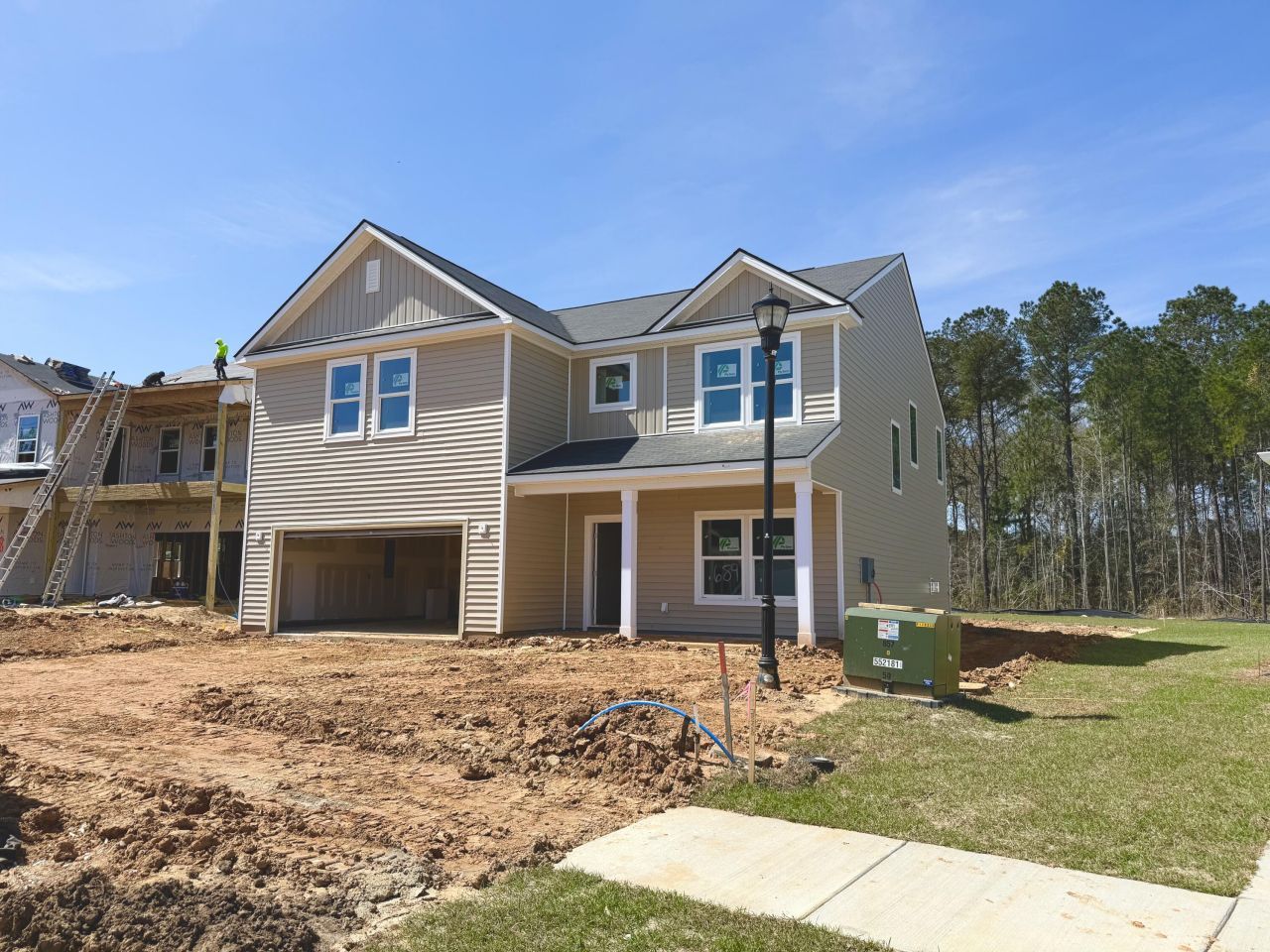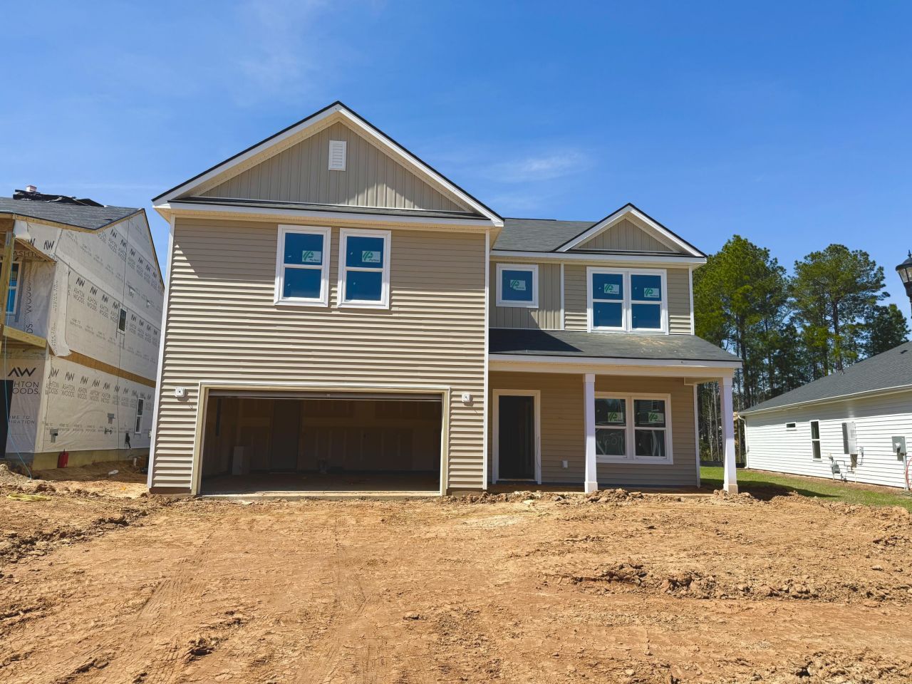 Cul De Sac Homesite Backing to Woods Ready in April! This award-winning Monroe plan lives exceptionally large and is situated on one of our most premium homesites. It features a spacious 21 x 12 covered back porch that overlooks a generous wide backyard, backing up to a serene wooded area. Upon entering the foyer, you'll find a study with glass french doors. The family room is filled with natural light, boasting soaring 17-foot ceilings and a cozy gas fireplace with floating wood wrap mantel! The kitchen has been upgraded with our Coastal design collection - white 42'' cabinetry, quartz countertops, modern blue coastal backsplash, gas range and microwave hood vent. The backyard is huge- 46ft deep x 79 ft wide!Upstairs will find three guest bedrooms and a hall bath. The true primary suite offers a luxurious retreat with a tiled walk-in shower with a bench, a linen closet, and a massive walk-in closet. Watson Hill is centrally located between Summerville and West Ashley offering all the conveniences the low country has to offer. With close proximity to Downtown Summerville's Azalea Park and Hutchinson Square and a short drive to downtown Charleston and Charleston's finest beaches, you can spend your days enjoying an abundance of activities or just relaxing poolside at the neighborhood amenity center! Watson Hill offers a wide range of amenities! The pool area includes a junior Olympic-sized pool, brick fireplace, covered seating, and a clubhouse with bathrooms, showers. Kids will love the pirate ship playground, while furry friends can enjoy the dog park. Nature enthusiasts can explore scenic walking trails through the trees, and sports fans will appreciate the dedicated sports field. Additionally, the neighborhood features plenty of open green spaces, perfect for relaxation or recreation.