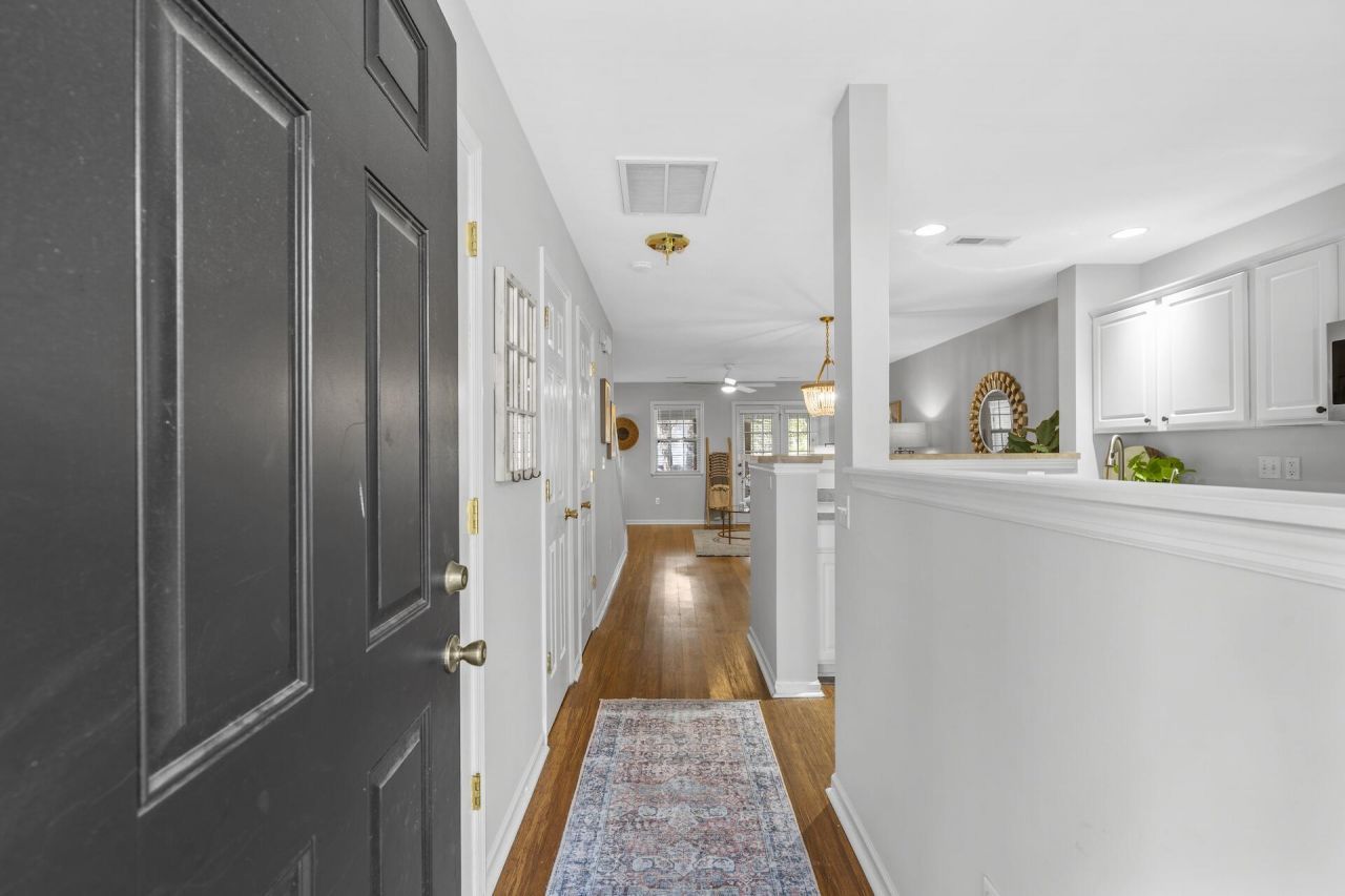 Welcome home to this thoughtfully designed 2-bedroom, 2.5-bath townhome ideally located off I-526 in the desirable Beresford Commons community. Perfectly positioned between Daniel Island and the new Pointe Hope development, this location provides easy access to restaurants, shopping, grocery stores, and schools.Inside, an open-concept layout showcases bamboo flooring throughout the main living areas. To the right, the kitchen features newly installed stainless steel appliances (2025), generous counter space, and a large pantry with built-in shelving for efficient organization. The kitchen flows seamlessly into the combined living and dining area, making entertaining effortless. A convenient half bath and screened-in porch with exterior storage complete the first floor.Upstairs, two spacious bedrooms serve as private retreats, each offering an en-suite bath, vaulted ceilings, ceiling fans, and custom closets with built-in shelving. A centrally located laundry room adds convenience, while fresh carpeting installed in 2023 enhances comfort. Additional major upgrades include a new roof (2025) and an updated HVAC system (2023), providing peace of mind for the next owner.Designed for low-maintenance living, the community offers a pool and comprehensive HOA coverage, including exterior maintenance, lawn care, exterior insurance, flood insurance, water, sewer, trash and a termite bond.Centrally located in the heart of the Lowcountry, residents enjoy quick access to major destinations just 15 minutes to Charleston International Airport, 20 minutes to historic Charleston, 10 minutes to Mount Pleasant, and under 25 minutes to the area's beaches. With an unbeatable location and true lock-and-leave convenience, this home offers everything needed for comfortable, easy living.