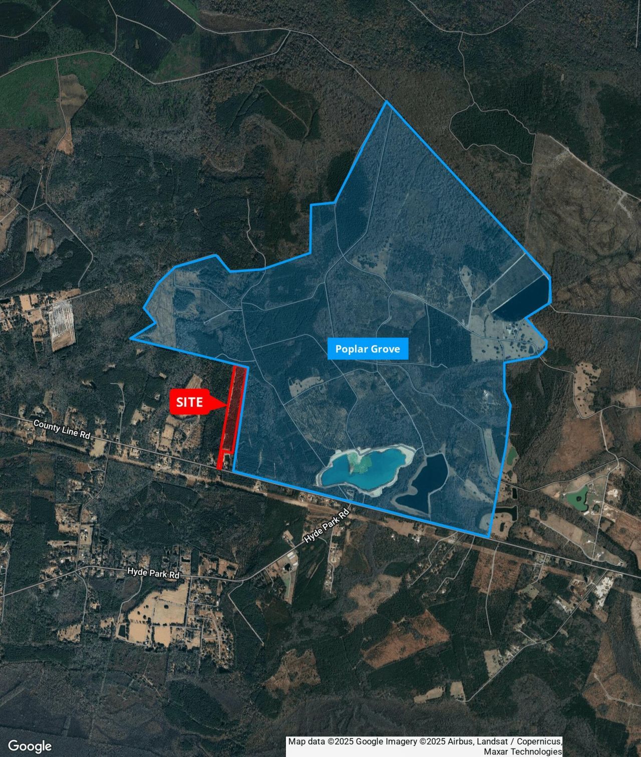This +/-22-acre tract is now available for sale and presents a rare opportunity for the right buyer. Bordered by Conservation Easement land (Poplar Grove) on the northern and eastern property lines, it offers long-term protection from dense development while creating a natural haven for wildlife such as turkeys and deer. The seller has completed road improvements, including a graded access road from County Line Road leading to the rear of the property. Interior roads are also established, providing easy access throughout. The front homesite parcel will be retained by the seller and subdivided, leaving a flag-shaped 22-acre tract with direct access from County Line Road. Property is for sale at $30,000/AC.